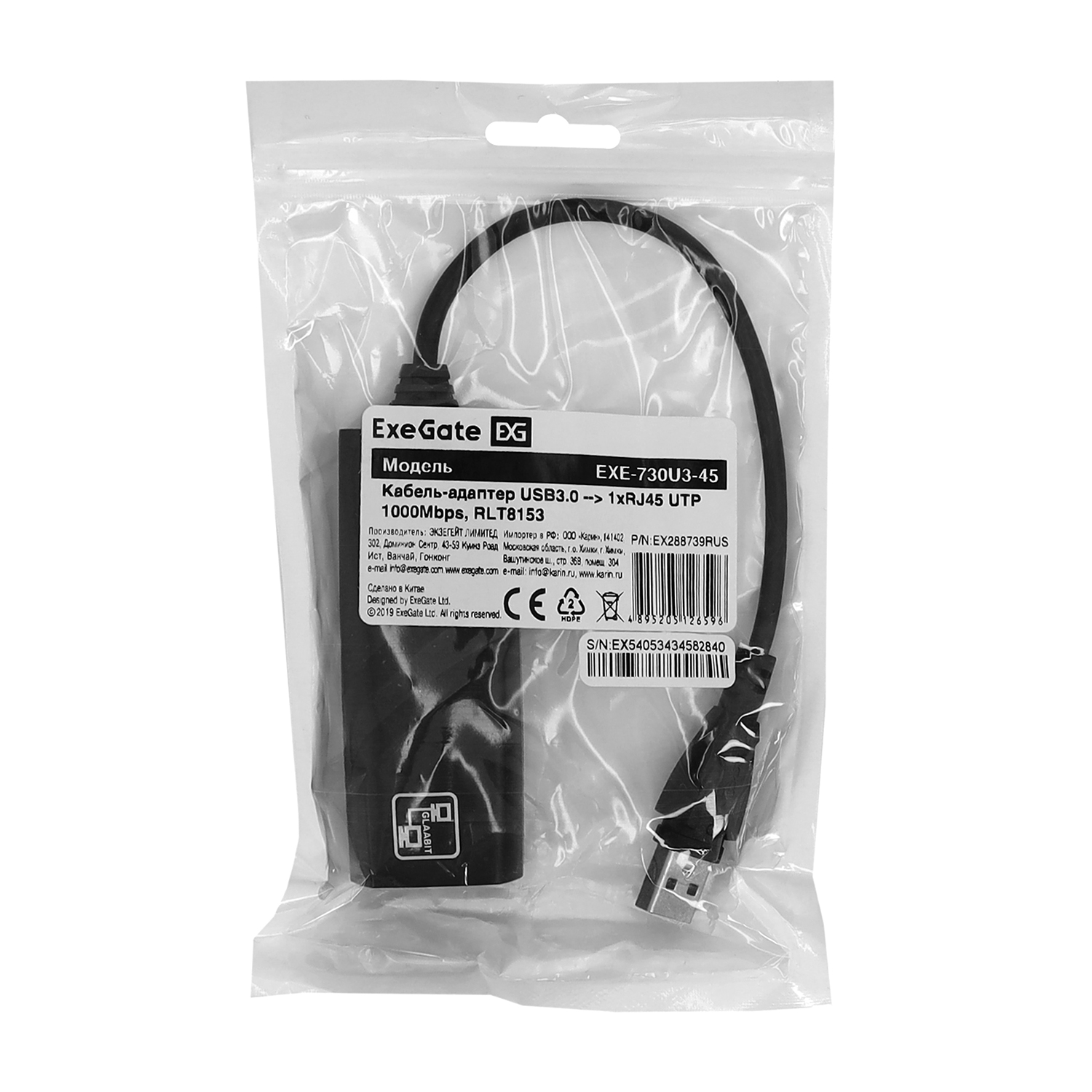 Адаптер USB на RJ-45, ExeGate EXE-730U3-45, USB NIC 10/100/1000 Mb, LAN