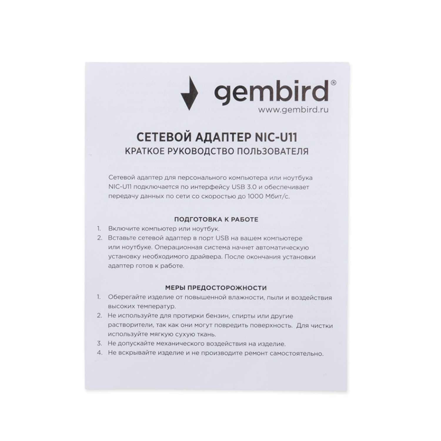 Адаптер USB на RJ-45, Gembird NIC-U11, USB NIC 10/100/1000 Mb, LAN