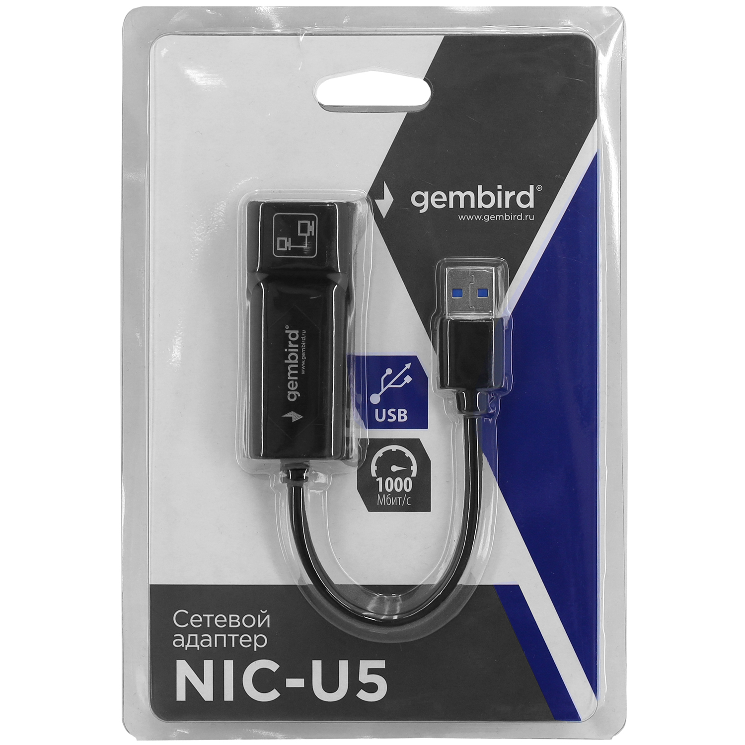 Адаптер USB на RJ-45, Gembird NIC-U5, USB NIC 10/100/1000 Mb, LAN