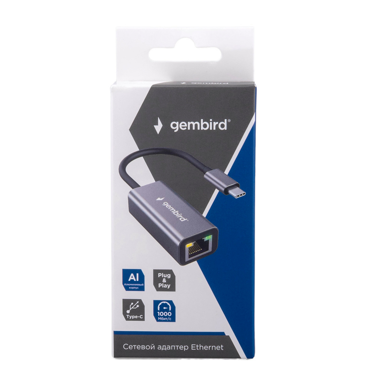 Адаптер USB на RJ-45, Gembird NIC-U8, USB NIC 10/100/1000 Mb, Type-C LAN