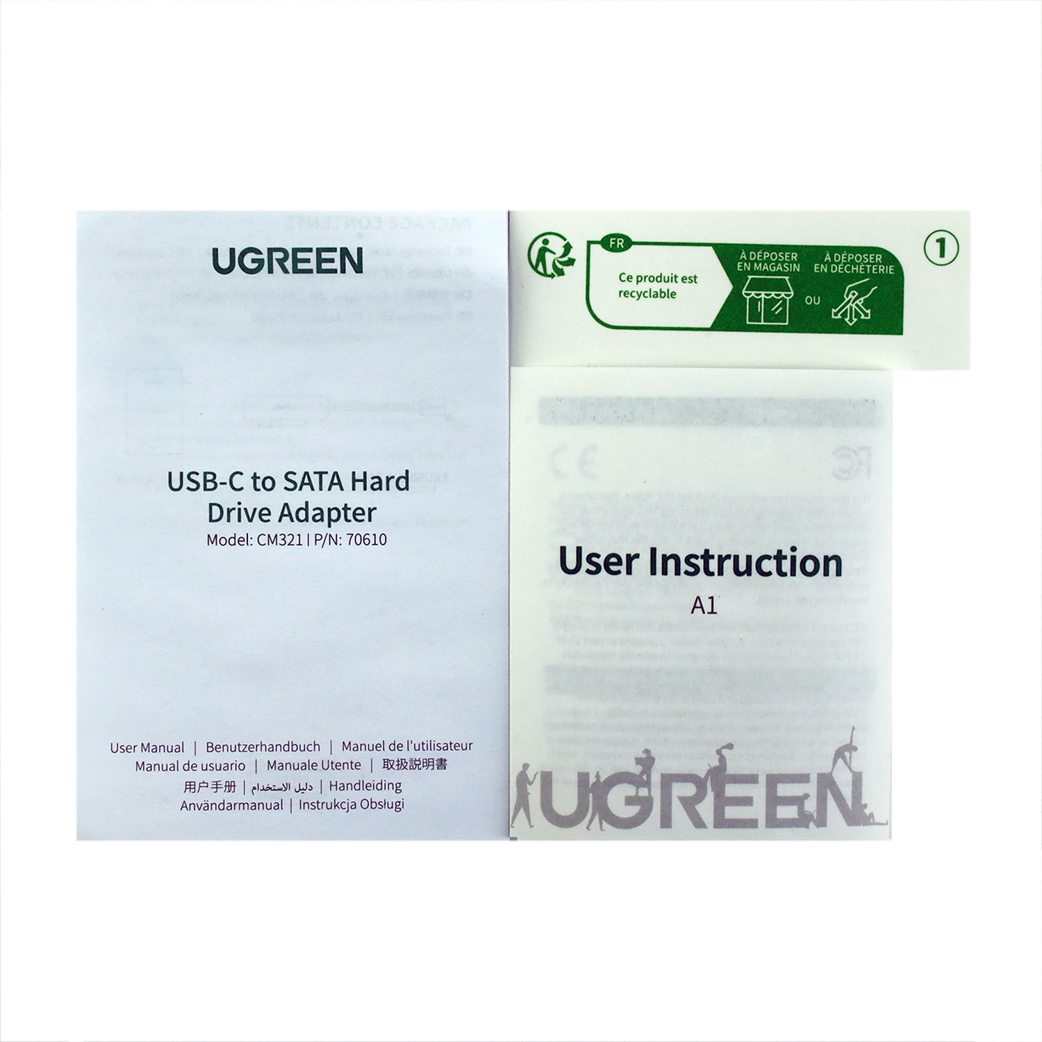 Адаптер USB Type-C to SATA, Ugreen 70610, 0.5m, Черный black