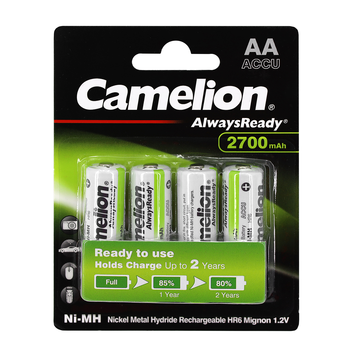 Аккумуляторы Camelion AA AlwaysReady NiMH, 2700mAh/1.2V, комплект - 4 штуки