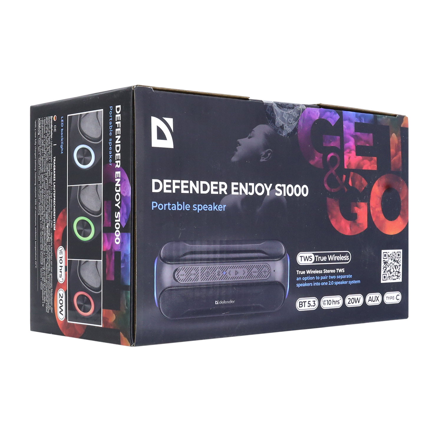 Акустическая система Defender Enjoy S1000, Черный Bluetooth SPK active 20W*1, 2000mAh, BT 4.2/USB/AUX, black (65688)