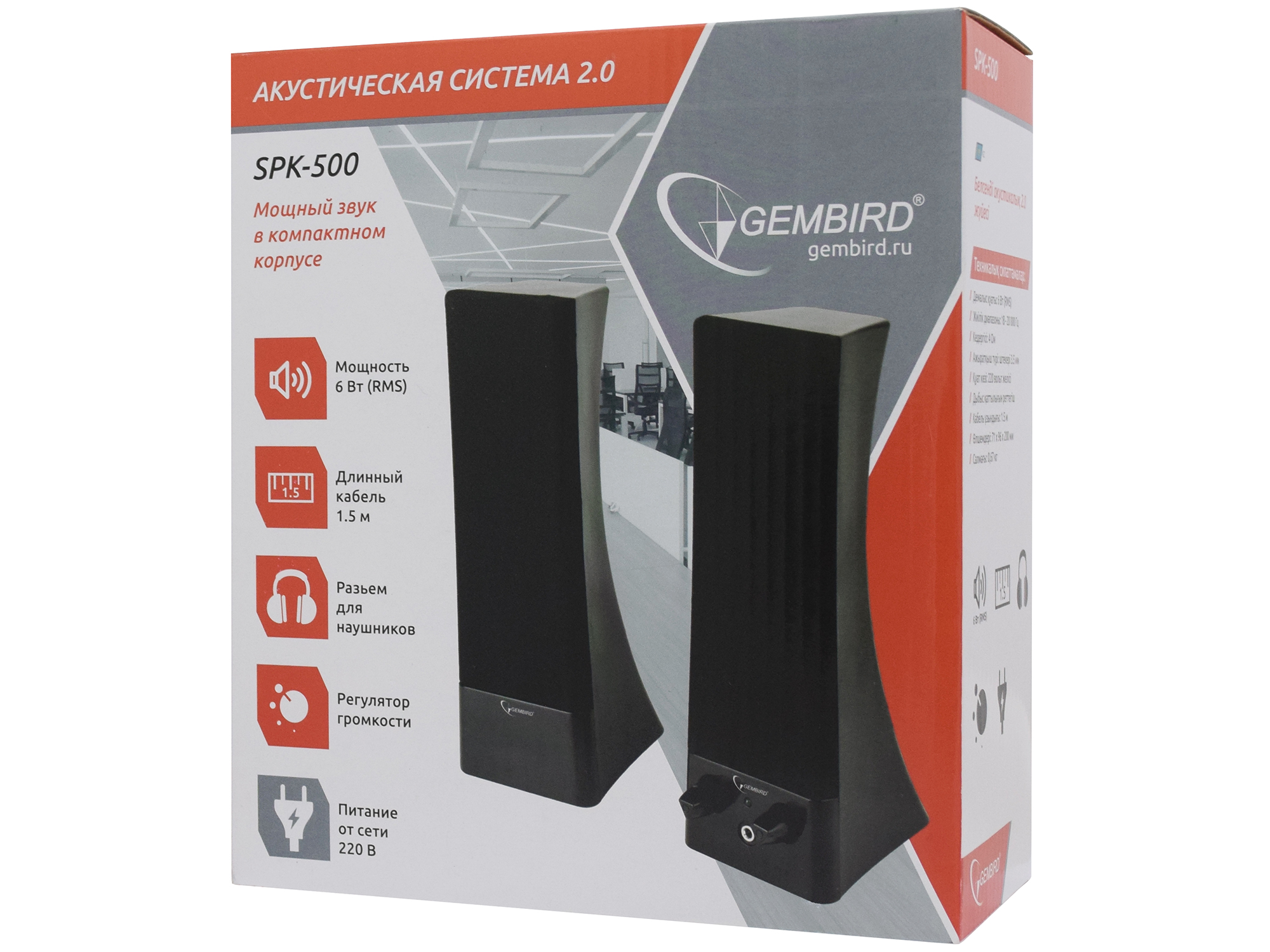 Акустическая система Gembird SPK-500 (2.0), Черный SPK active RMS 3Wx2, 220V power, Black