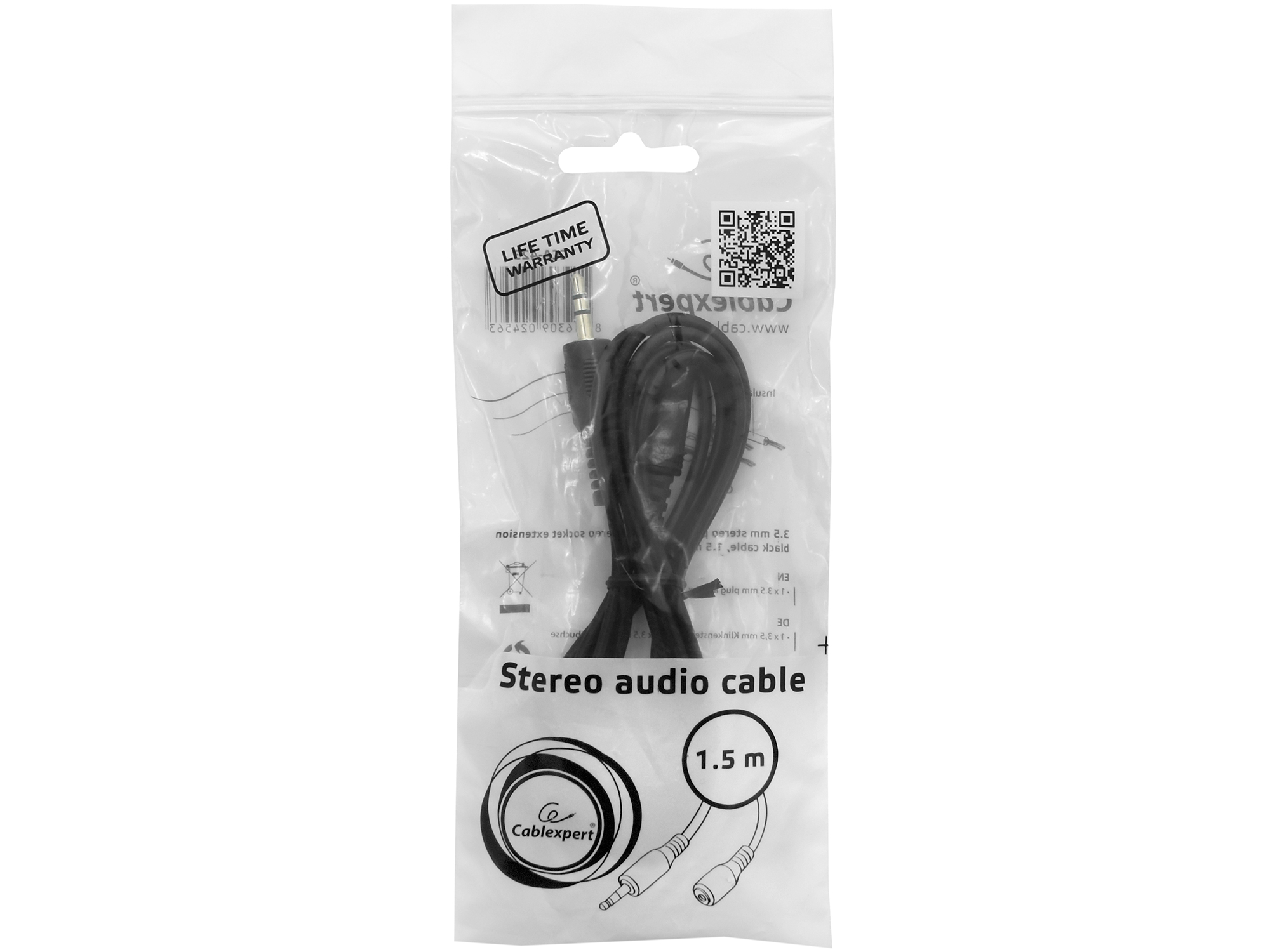 Cable Audio, 3.5mm/m - 3.5mm/f, Cablexpert CCA-423, 1.5m, black