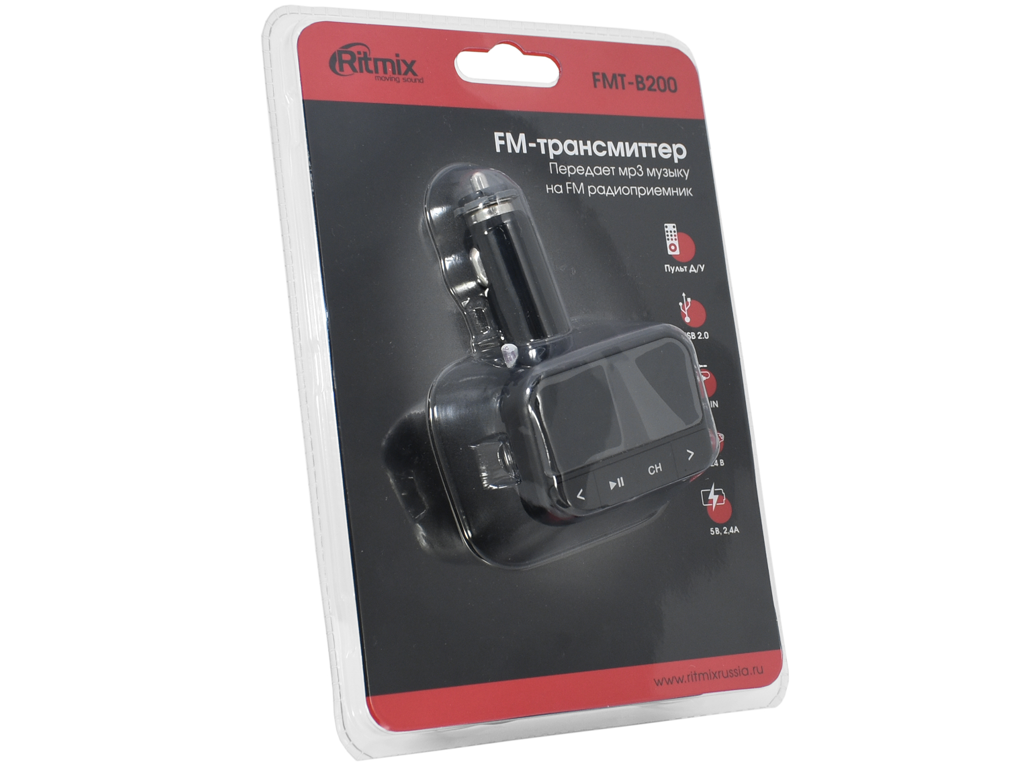 Автомобильный FM модулятор Ritmix FMT-B200 MP3 car modulator + USB charger, USB/mSD -> MP3 player, AUX, LED, IR