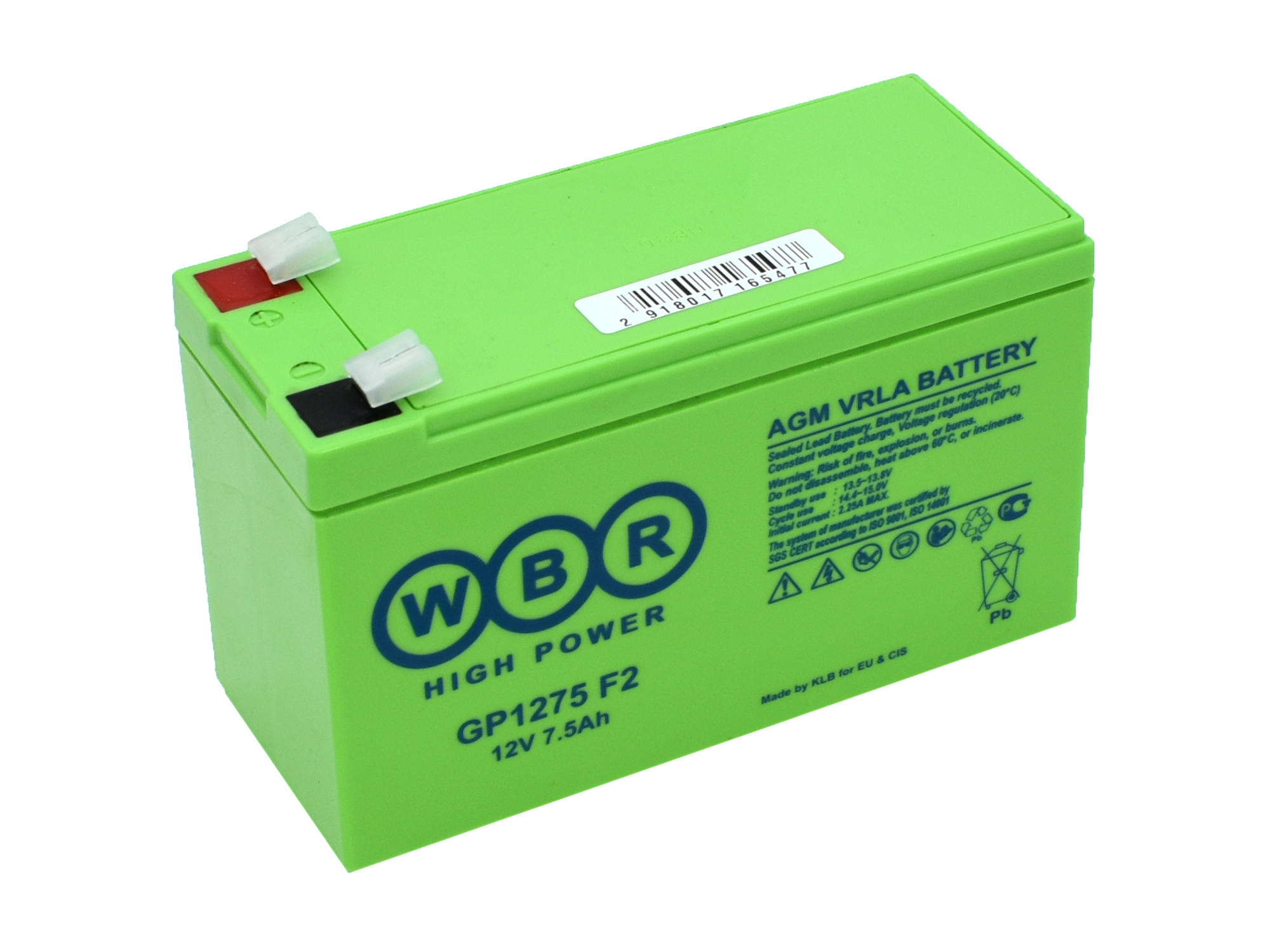 Батарея для UPS 12V, 7.5Ah, WBR GP1275 F2 151x65x94mm