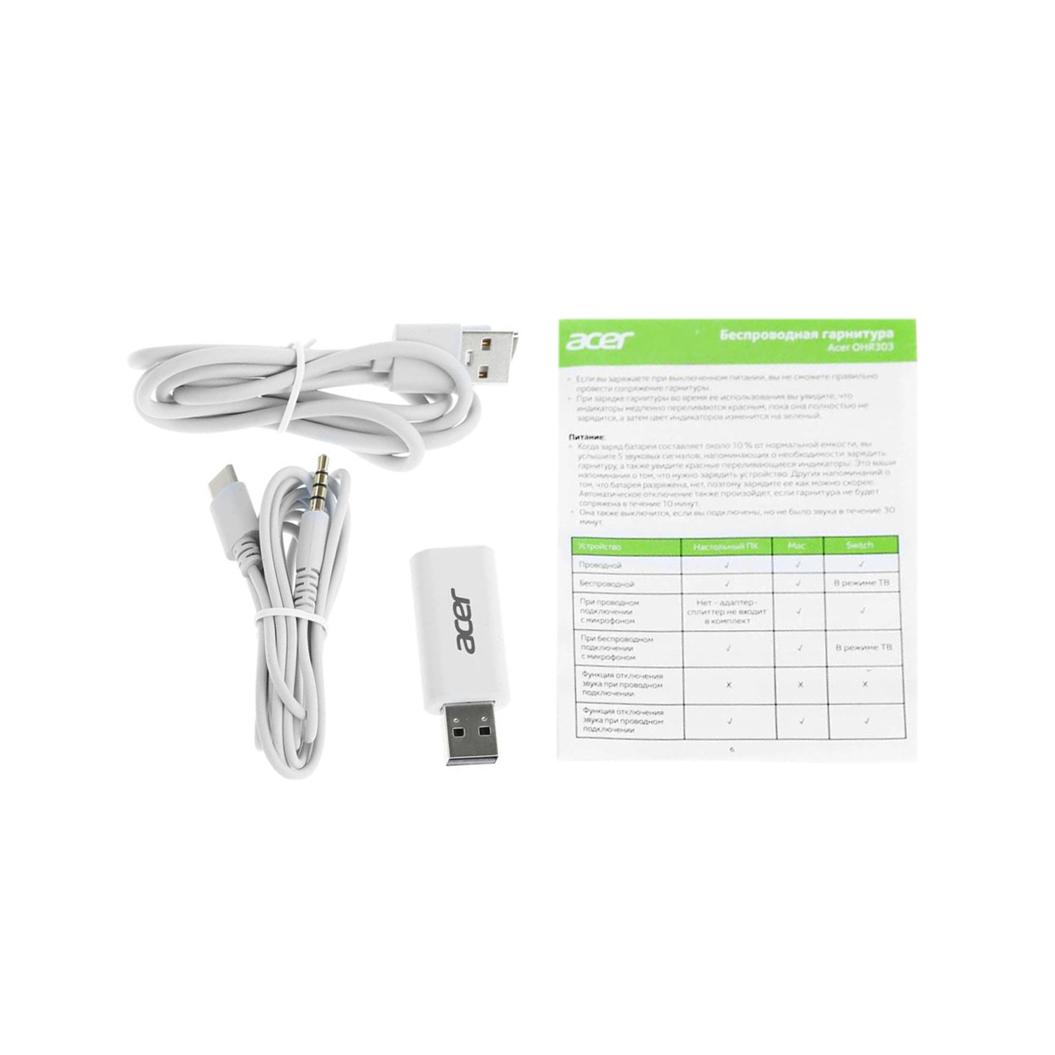 Беспроводная гарнитура Acer OHR303, Белый Bluetooth Garnitura 32ohm, 20-20000Hz, 102dB, BT 5.1/2.4G/cable White
