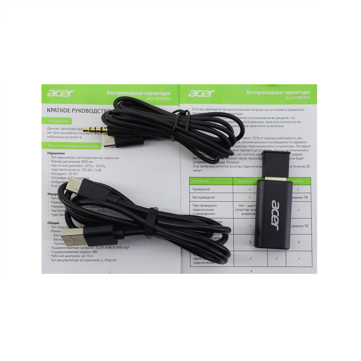 Беспроводная гарнитура Acer OHR303, Черный Bluetooth Garnitura 32ohm, 20-20000Hz, 102dB, BT 5.1/2.4G/cable black