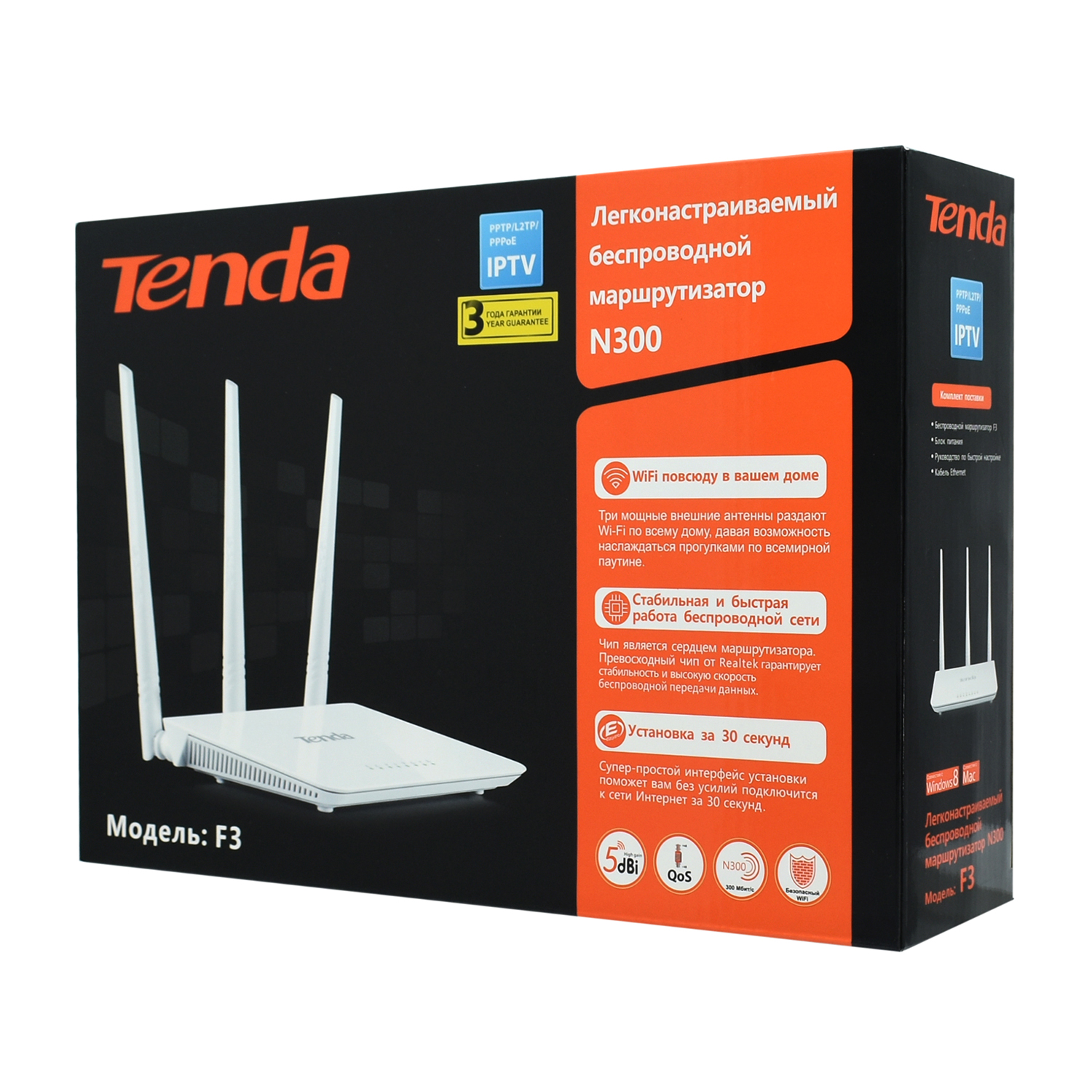 Беспроводной маршрутизатор Tenda F3 Wireless router, WiFi 4 (300M), (3+1) x 10/100M