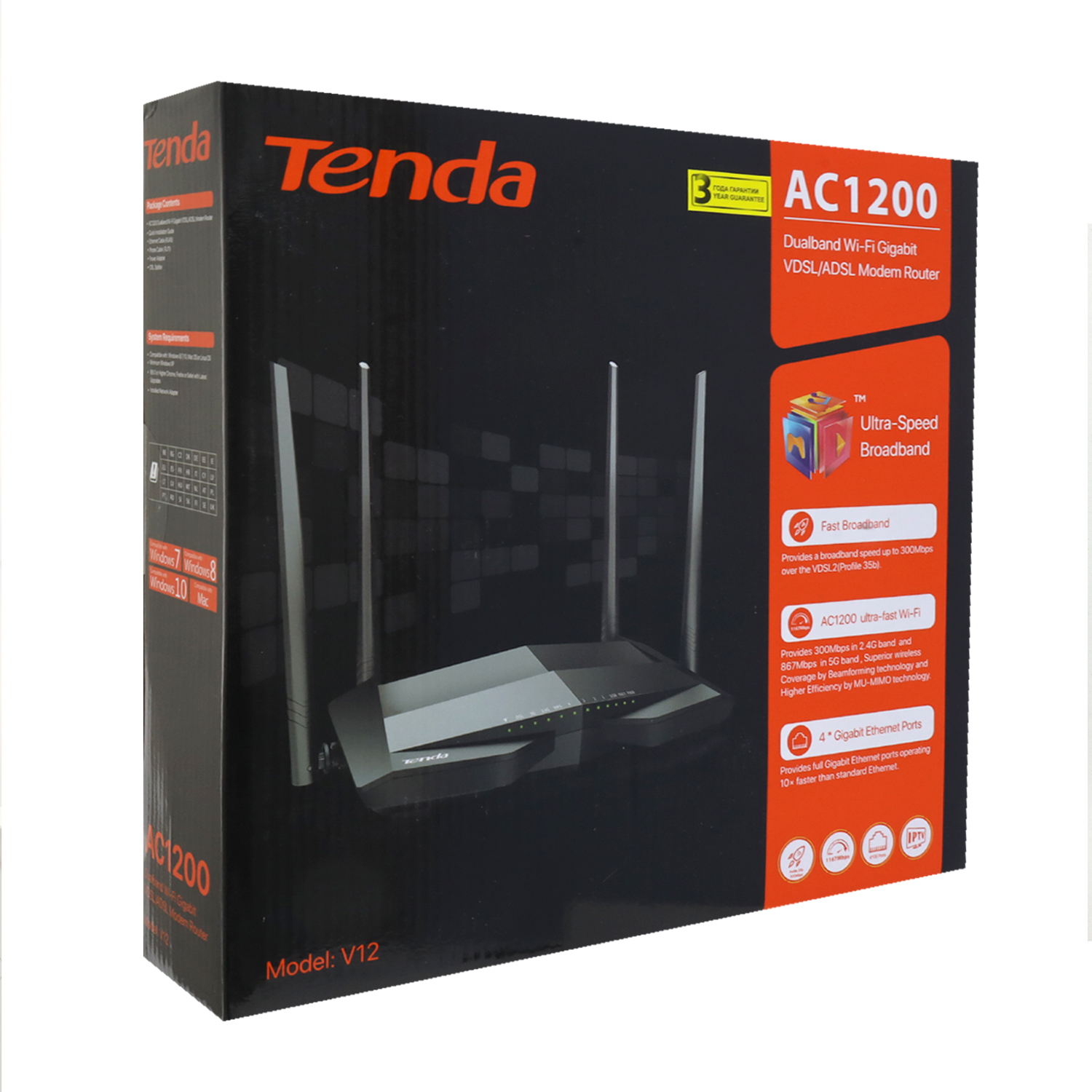 Беспроводной маршрутизатор Tenda V12 Wireless router, WiFi 5 (AX1100M), (3+1) x 10/100/1000M
