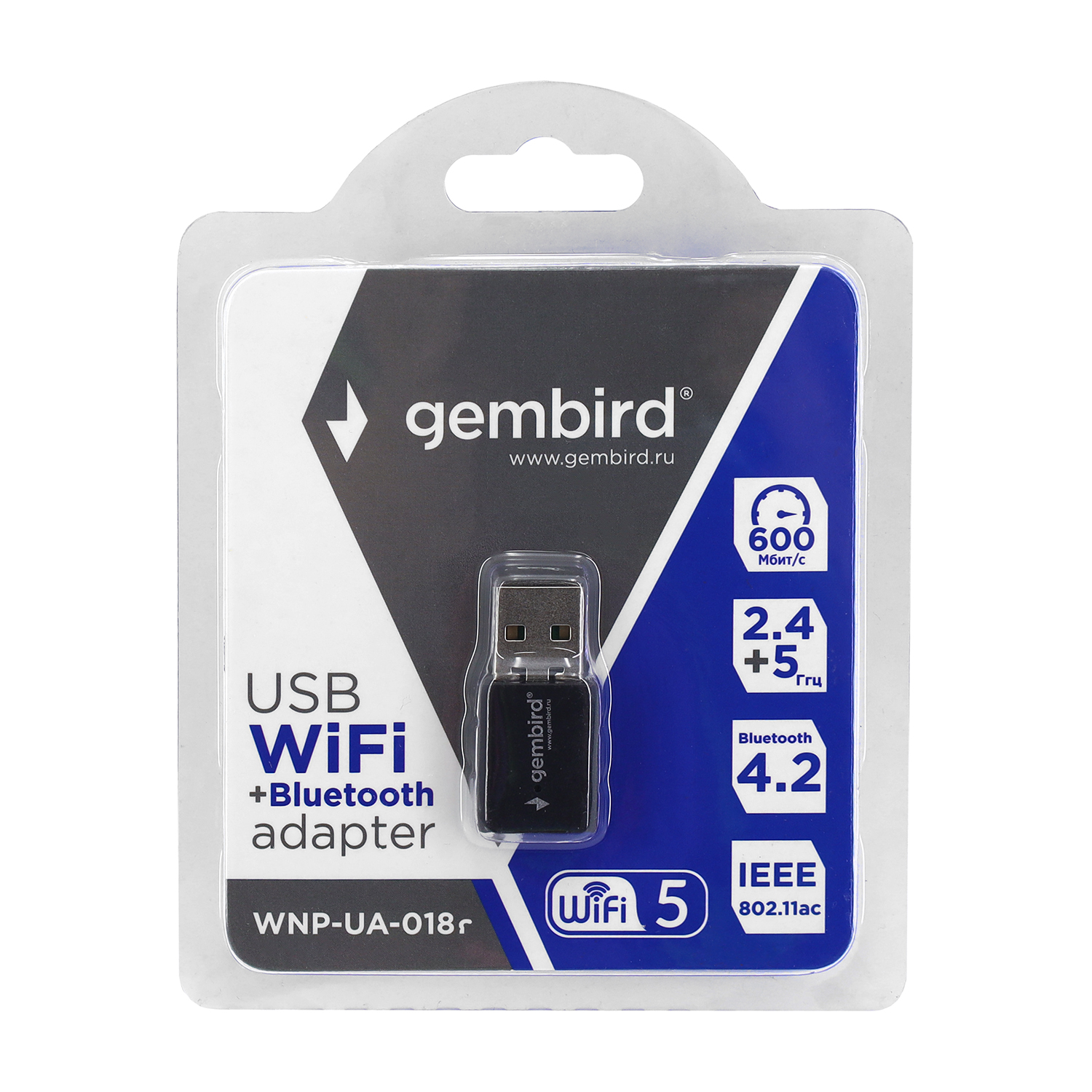 Беспроводной сетевой адаптер Gembird WNP-UA-018 Wireless LAN USB adapter, BT,WiFi 5 (433+150Mbps), USB