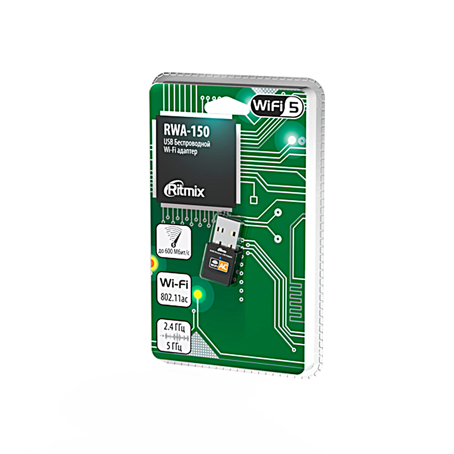 Беспроводной сетевой адаптер Ritmix RWA-150 Wireless LAN USB adapter, WiFi 5 (600M), RTL8811CU, USB, black