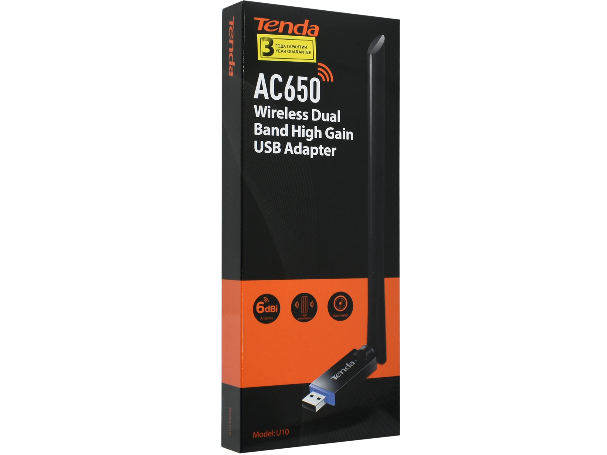 Беспроводной сетевой адаптер Tenda U10, Черный