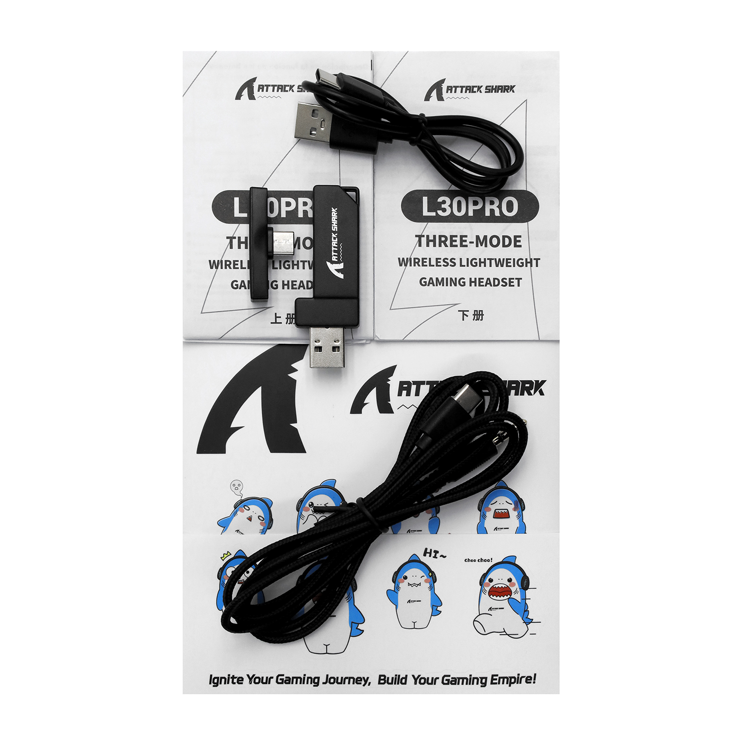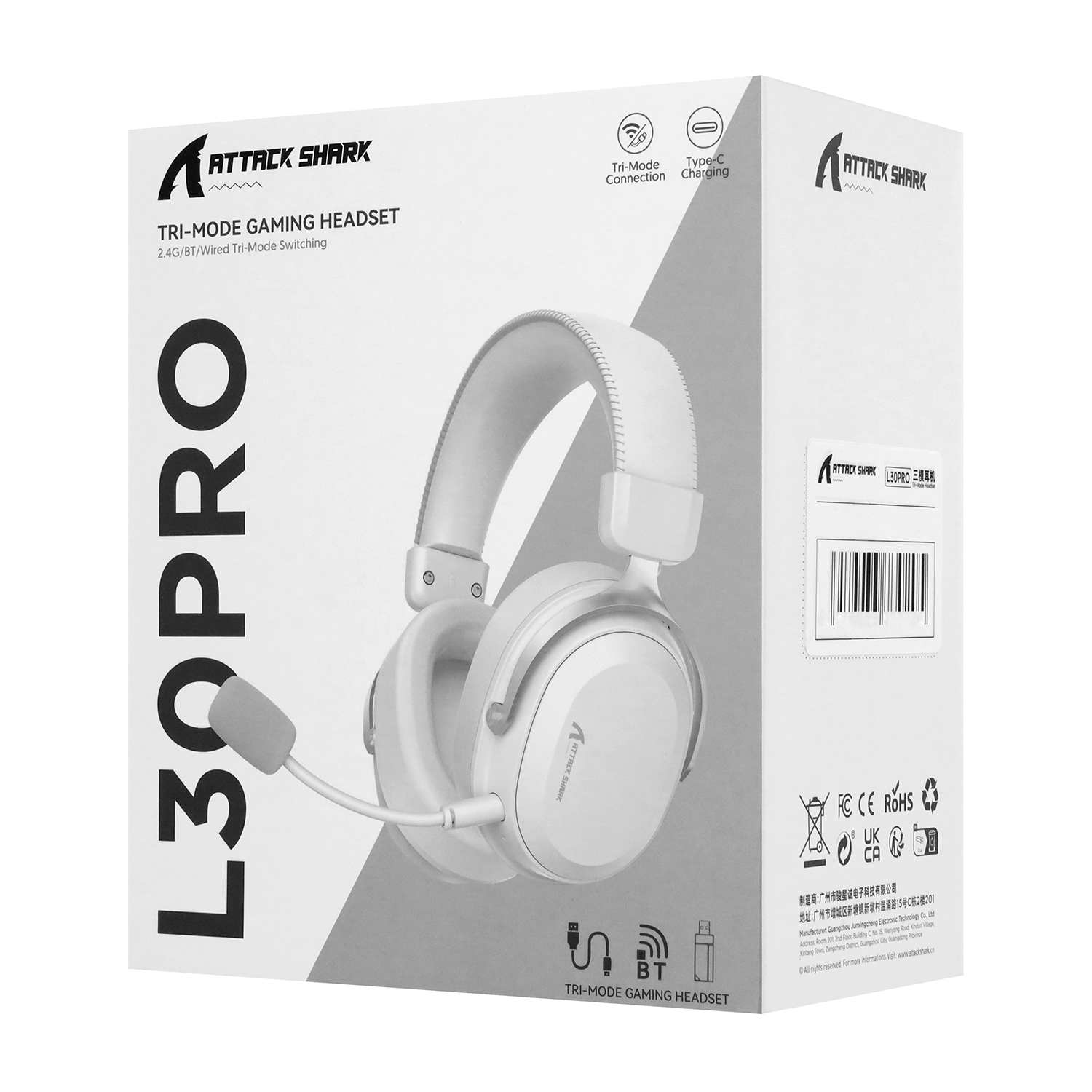 Bluetooth headphone Attack Shark L30 PRO, BT/cable/USB-C, Black