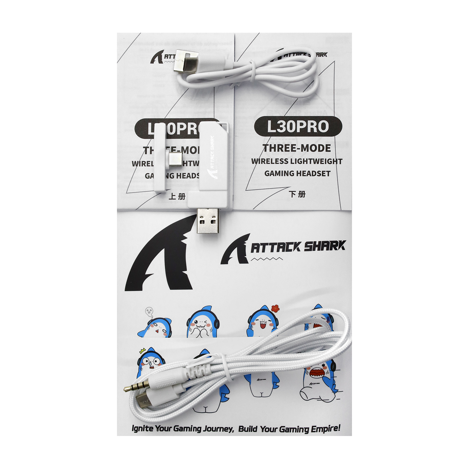 Bluetooth headphone Attack Shark L30 PRO, BT/cable/USB-C, White