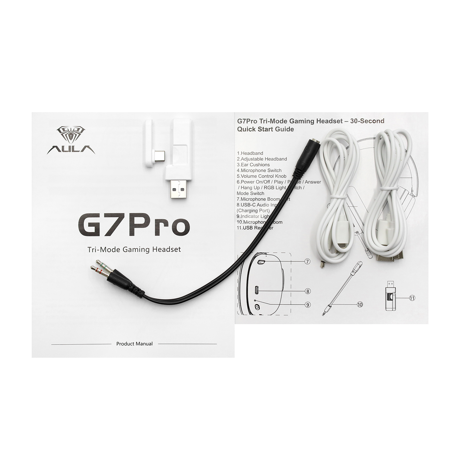 Беспроводные наушники AULA G7 PRO WHITE, белый Bluetooth headphone BT5.3/2.4G/cable, white