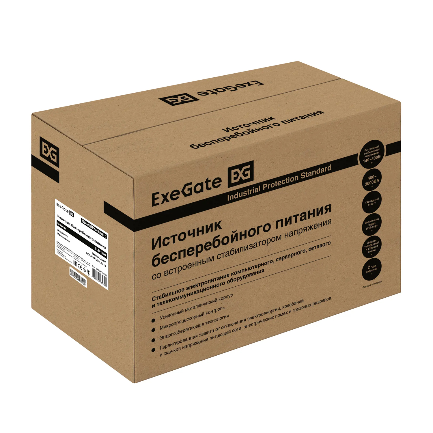 Блок бесперебойного питания ExeGate LLB-1200.LCD.AVR.2SH.3C13 UPS 1200VA/750W, 12V/7.2Ah*1, (2) Schuko + (3) C13