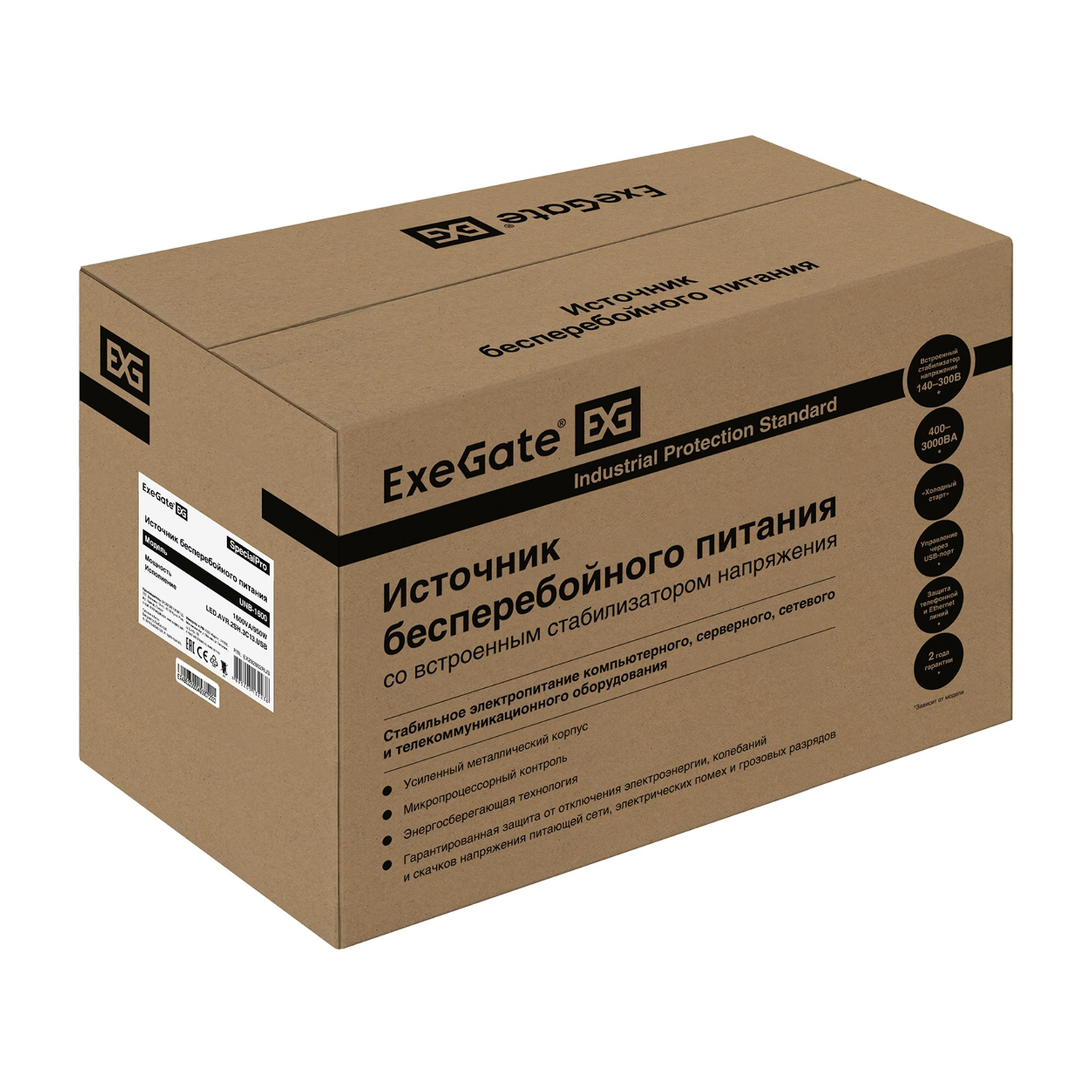 Блок бесперебойного питания ExeGate UNB-1600.LED.AVR.2SH.3C13.USB UPS 1600VA/950W, 12V/9Ah*2, (2) Schuko+(3)IEC