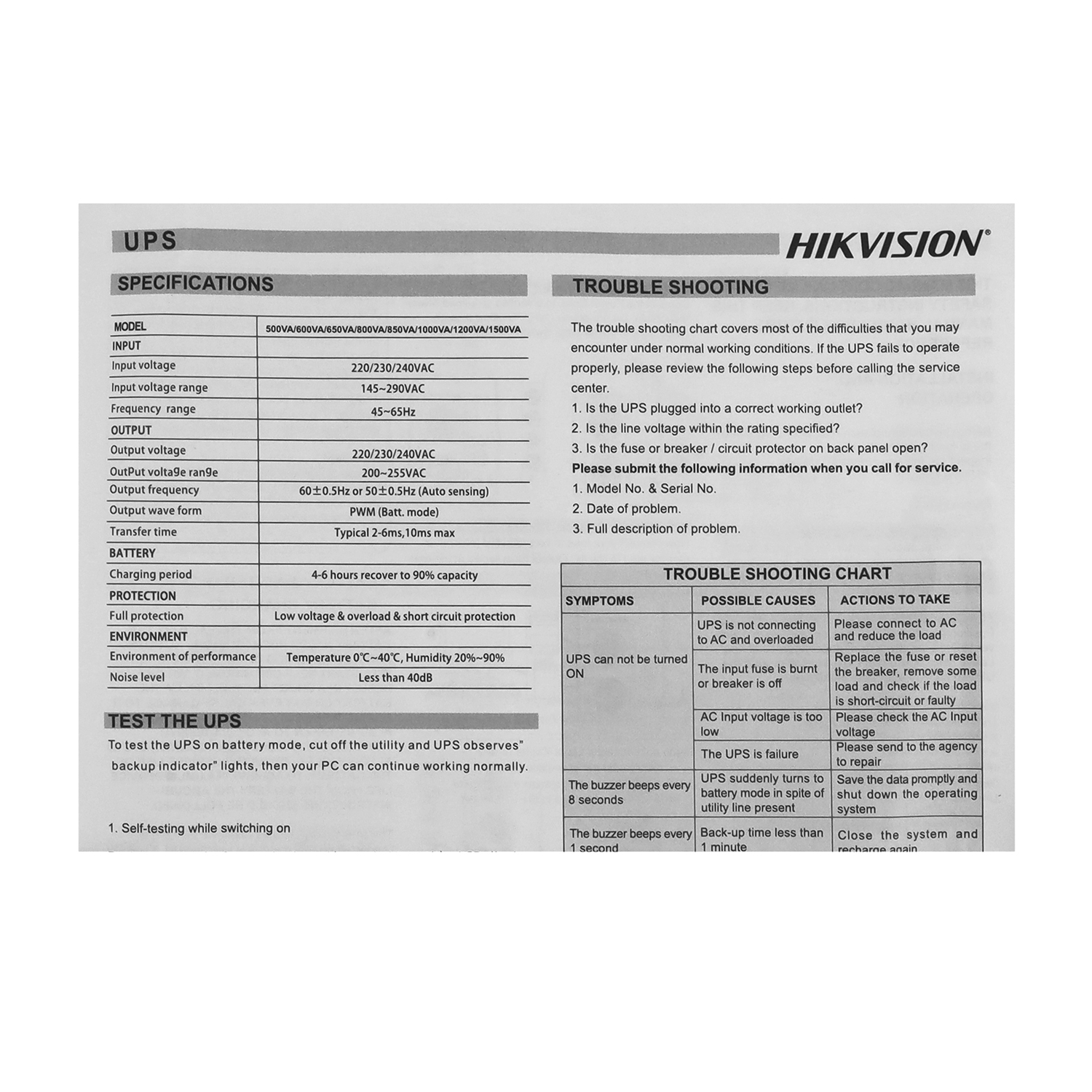 UPS Hikvision DS-UPS600, 600VA/360W, 12V/7Ah*1, (2) Schuko