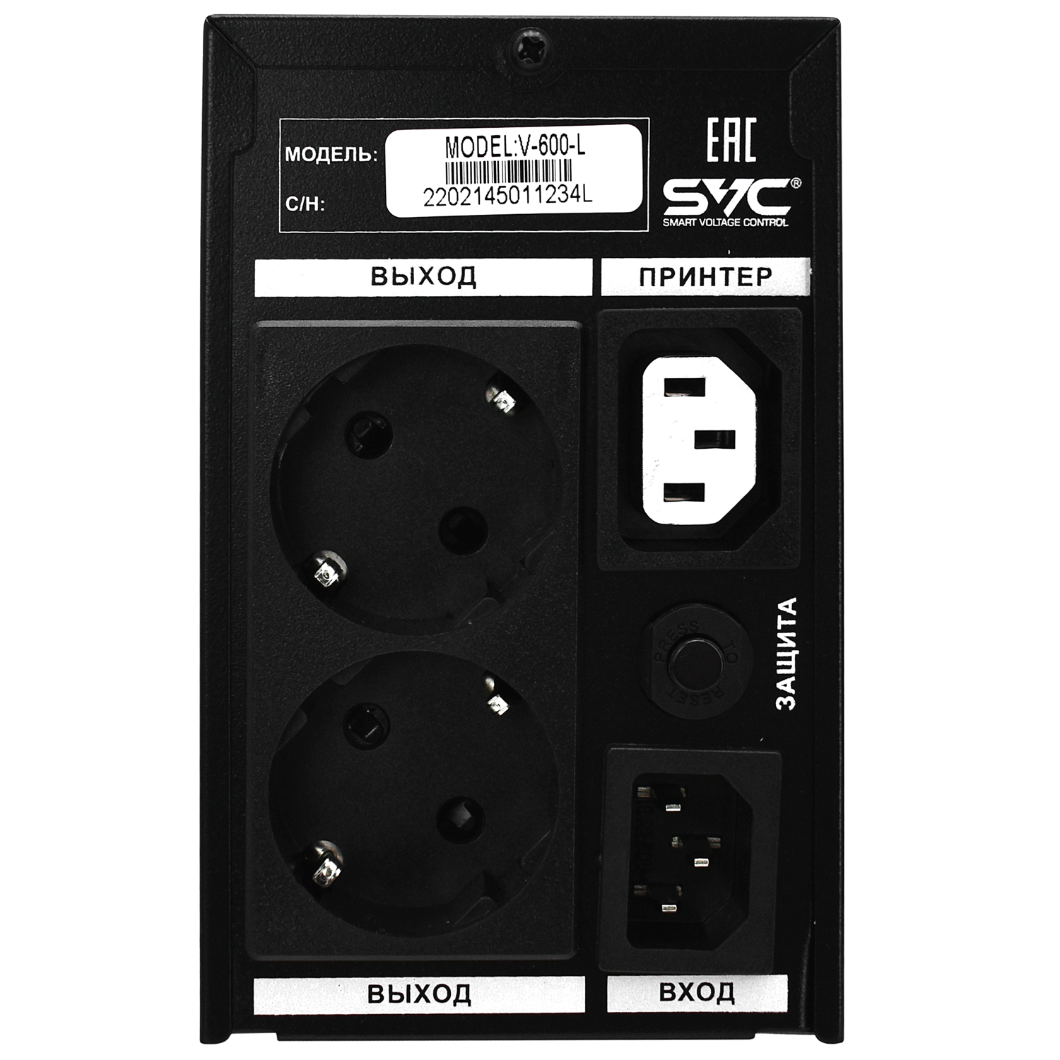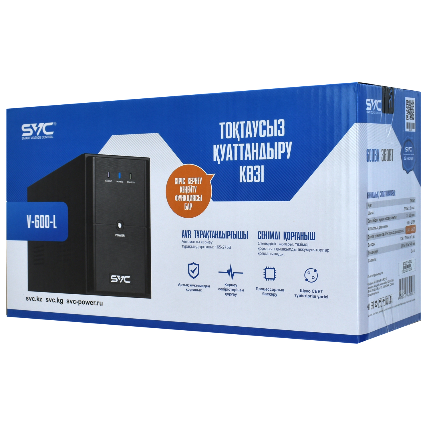 Блок бесперебойного питания SVC V-600-L UPS 600VA/360W, 12V/7.5Ah*1, (2) Schuko, (1) C13