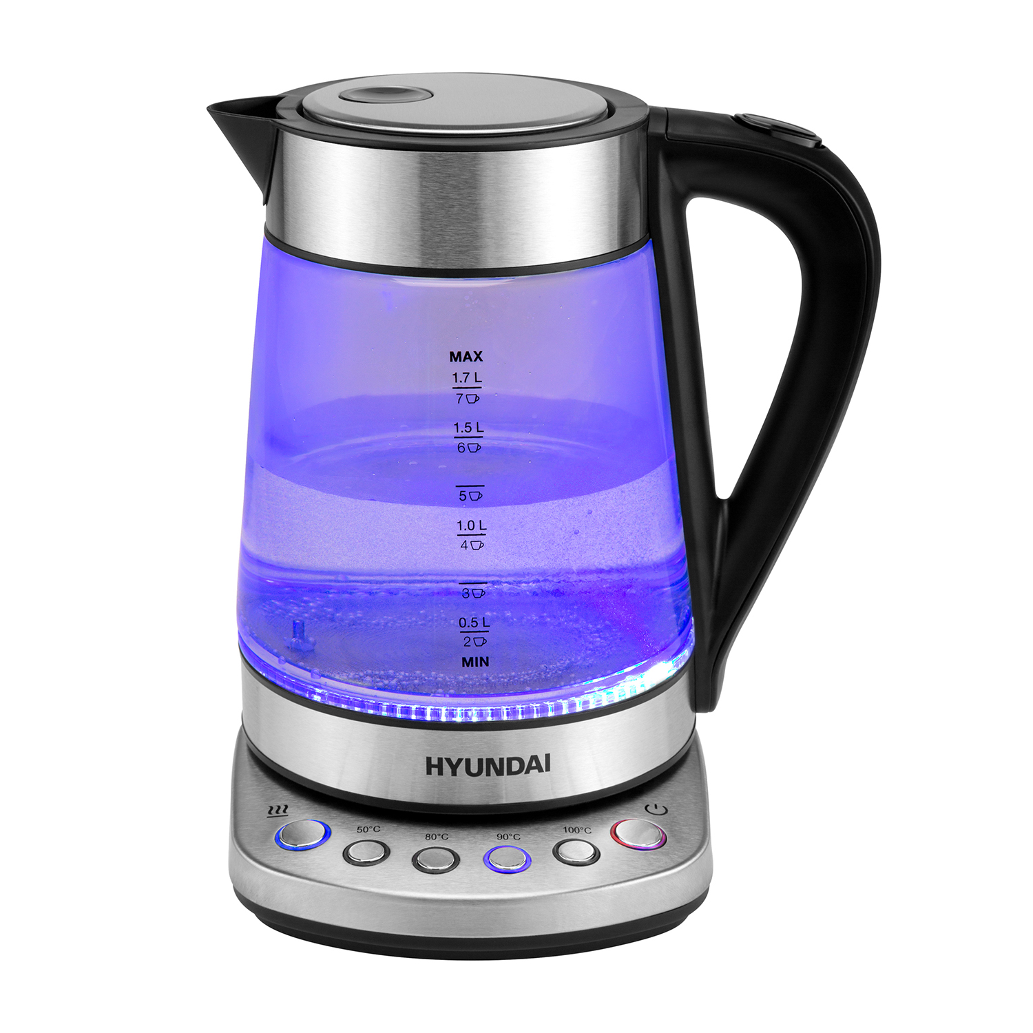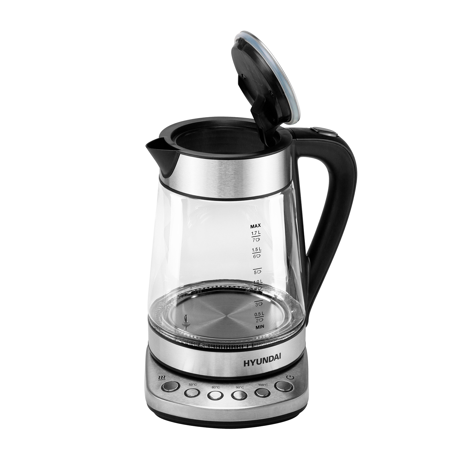Чайник Hyundai HYK-G3026 1.7л. 2200Вт серебристый/черный (стекло/металл/пластик)