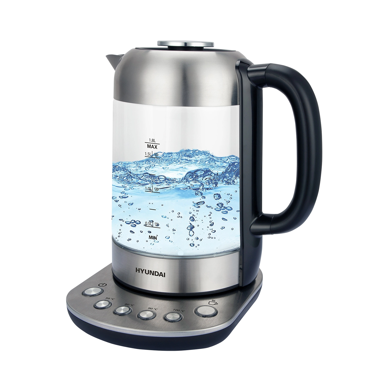 Чайник Hyundai HYK-G8407 1.8л. 2200Вт черный/прозрачный (стекло)