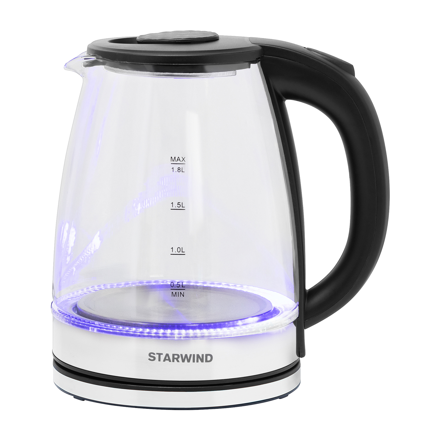 Чайник Starwind SKG2050 1.8л. 1800Вт черный/серебристый (стекло/пластик)