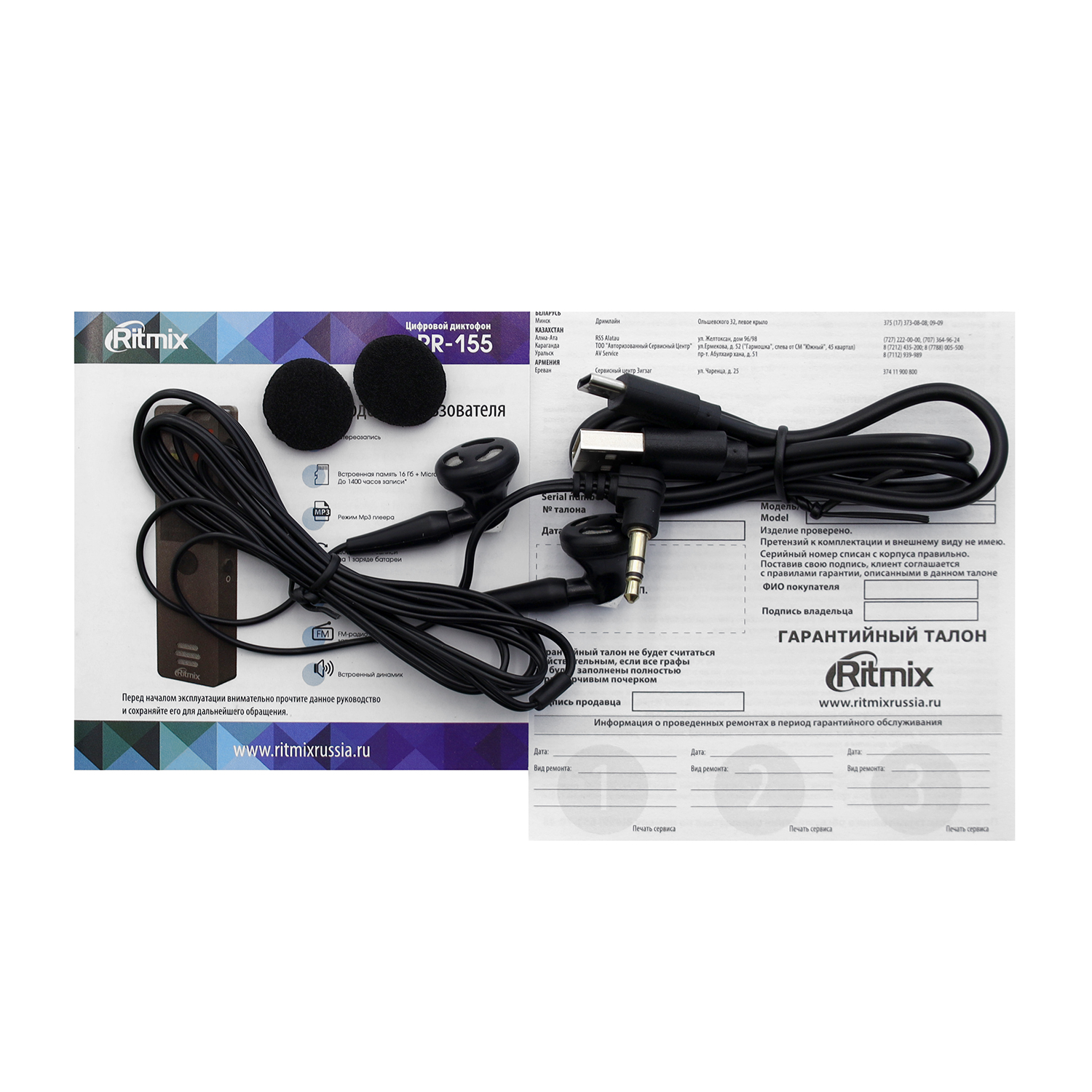 Диктофон Ritmix RR-155 Black, 16GB Digital Voice Recorder/MP3 player stereo, mSD, MP3/flac/FM, USB Type C, Accu