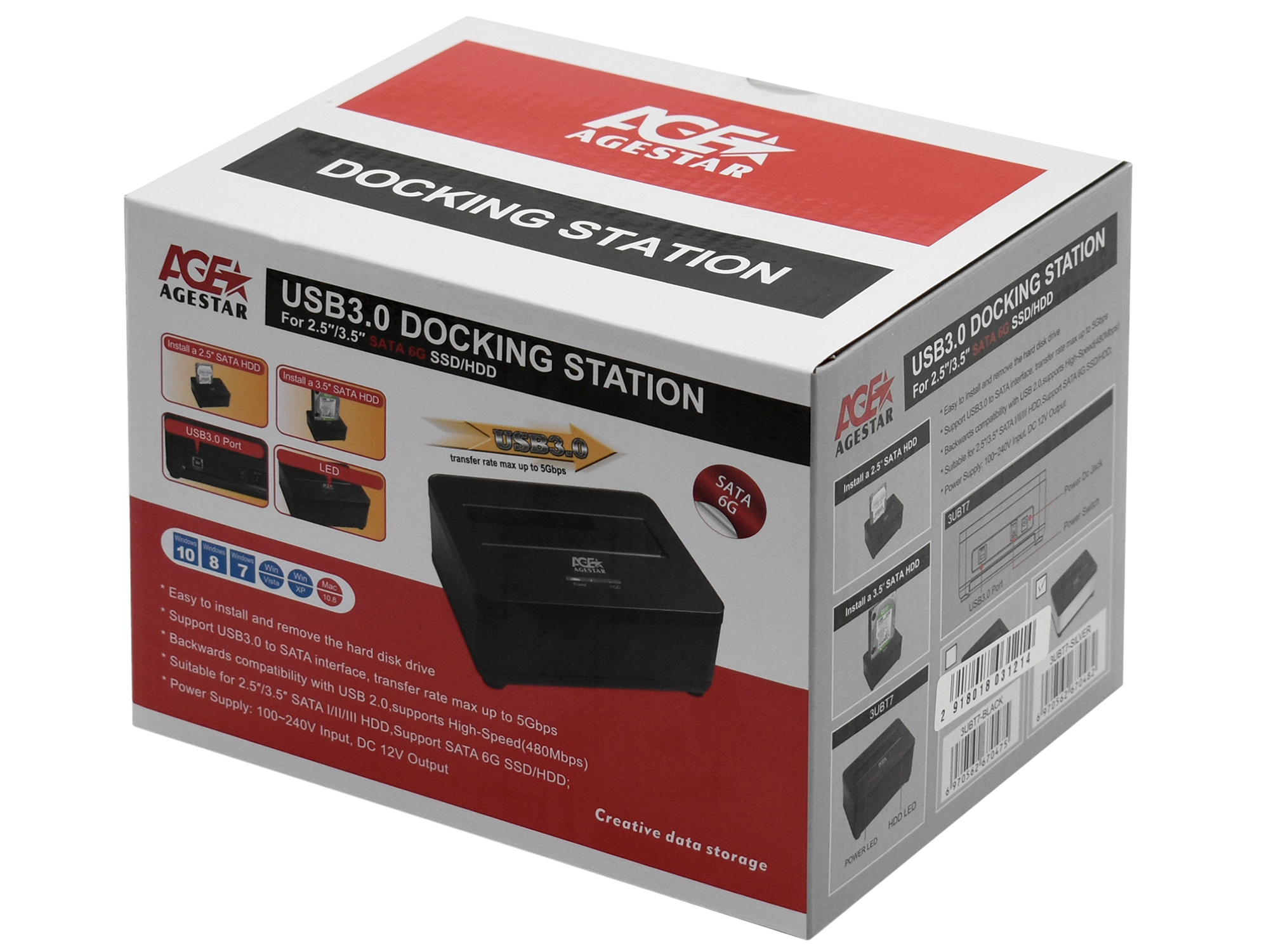 Док-станция для 2,5"/3,5" жестких дисков Agestar 3UBT7 External Docking Station, for SATA HDD, USB 3.0, ext. PS, silver