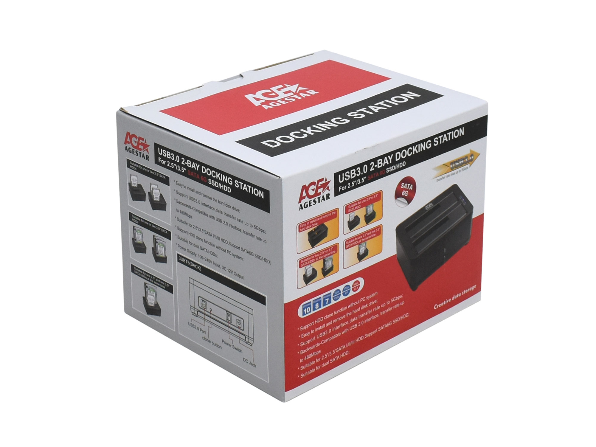 Док-станция для 2,5"/3,5" жестких дисков Agestar 3UBT8, Черный External Docking Station, for SATA 2 HDD, USB 3.0, ext. PS, black