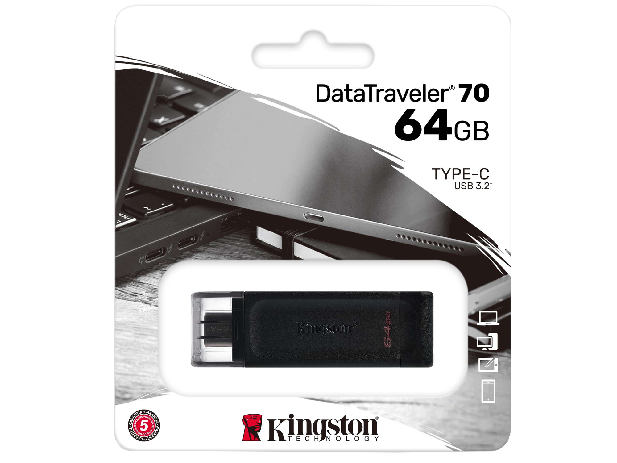 USB flash 64GB Kingston DT70, DT70/64GB, USB-C 3.2, black