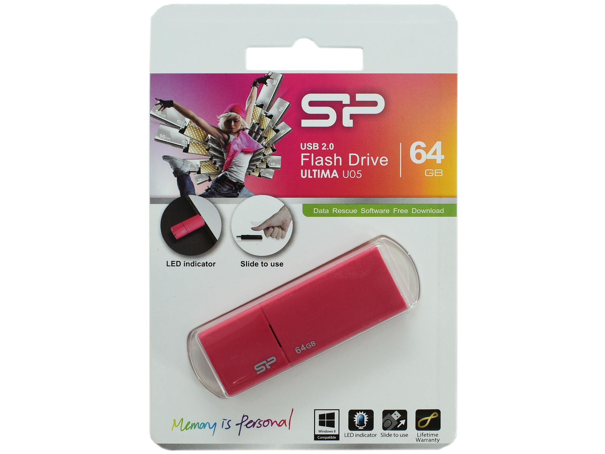 Флешка USB Silicon Power, Ultima U05 SP064GBUF2U05V1H, 64GB, Розовый flash USB 2.0, pink