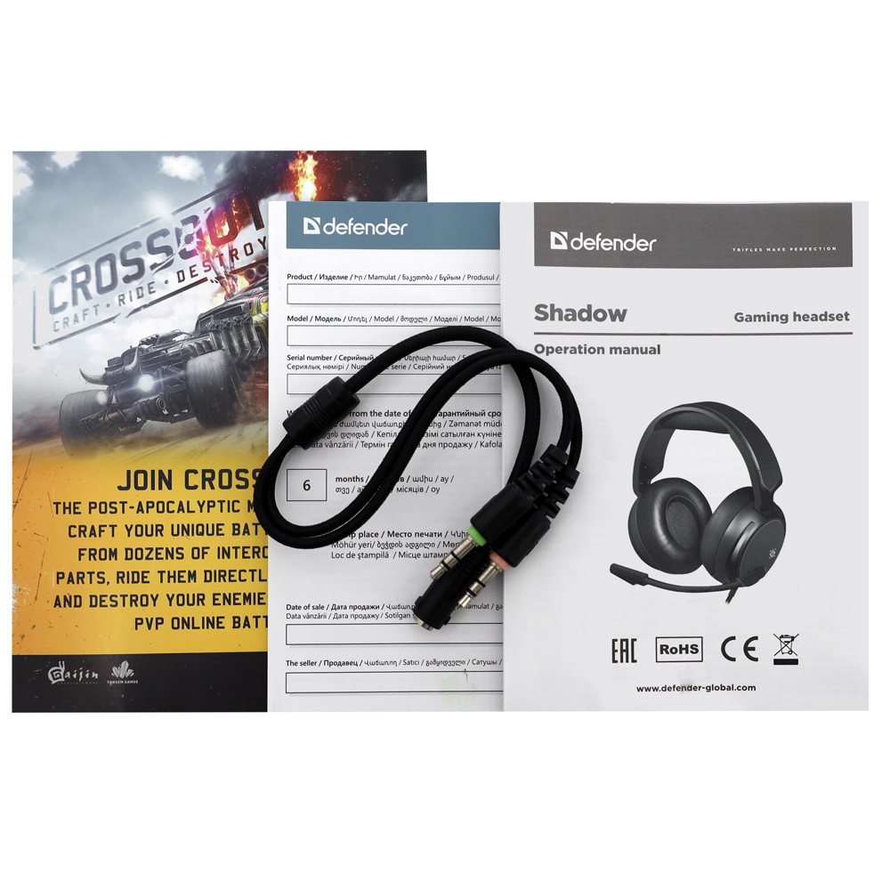 Гарнитура Defender Shadow black, Черный Garnitura 32ohm, 20-20000Hz, 102dB, 2m, black (64600)