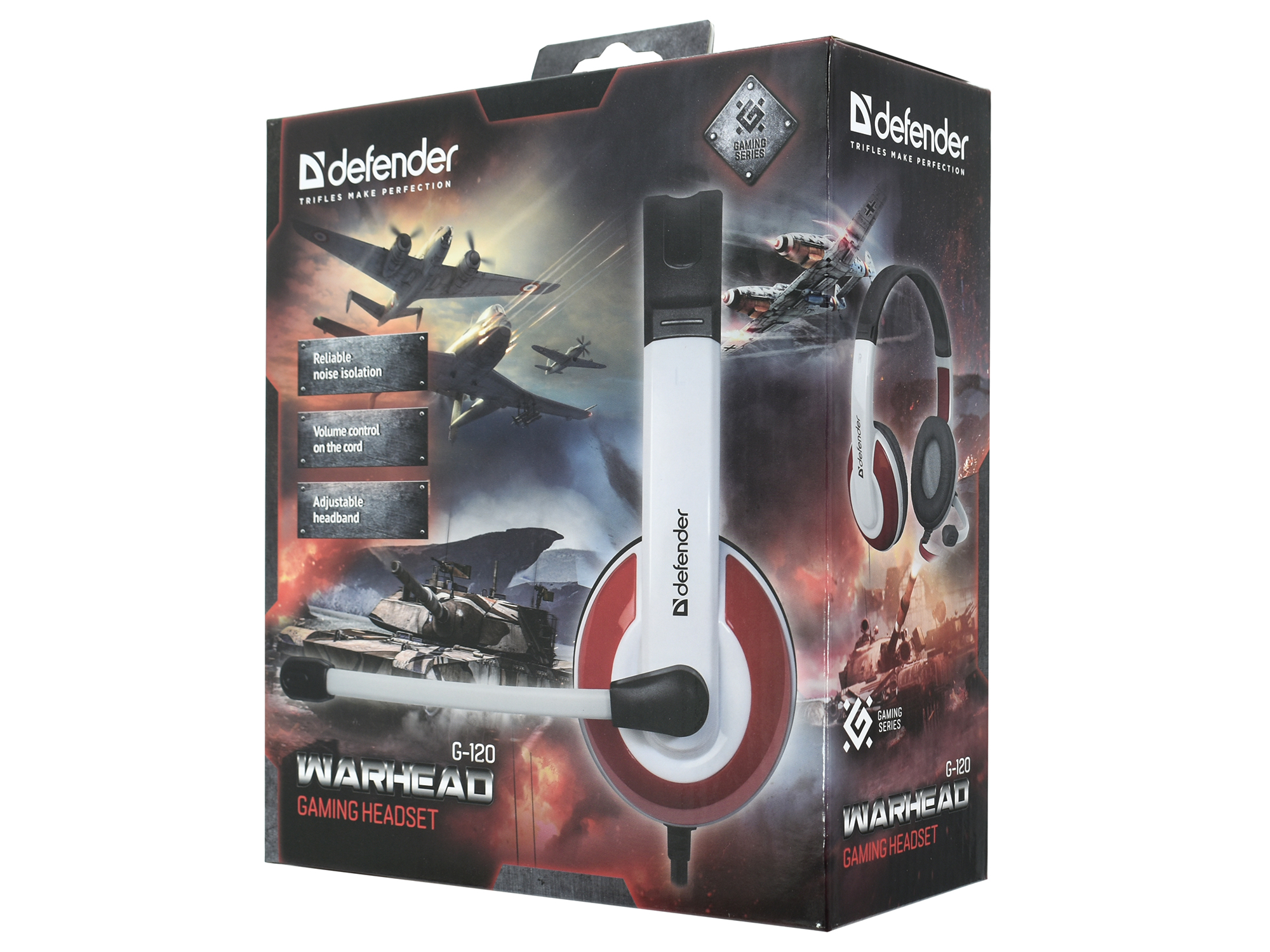 Гарнитура Defender Warhead G-120 Garnitura 32ohm, 20-20000Hz, 110dB, 2.0m, white-red (64098)