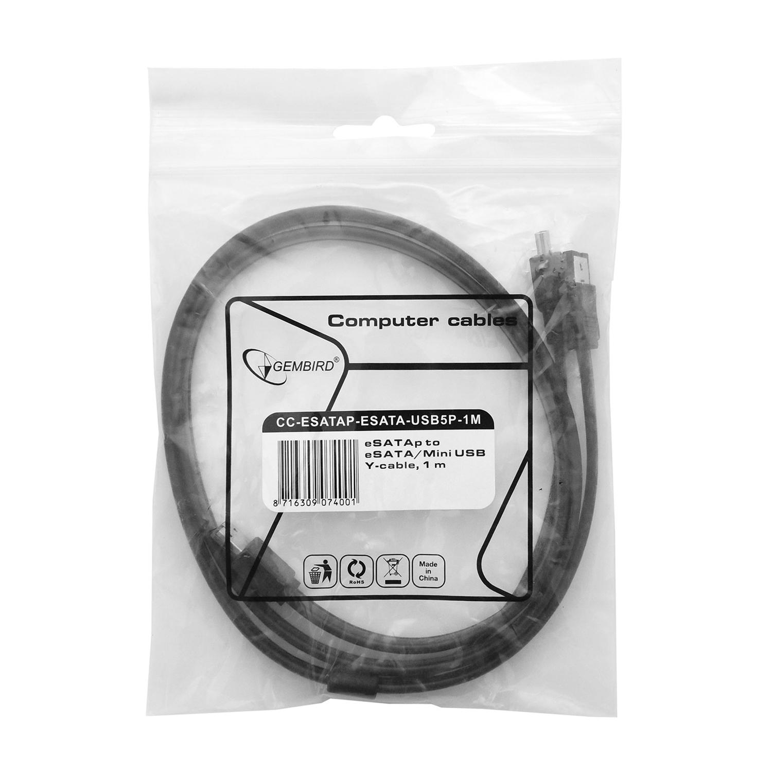 Кабель eSATA to eSATA/miniUSB, Gembird CC-ESATAP-ESATA-USB5P-1M Cable 1м, black