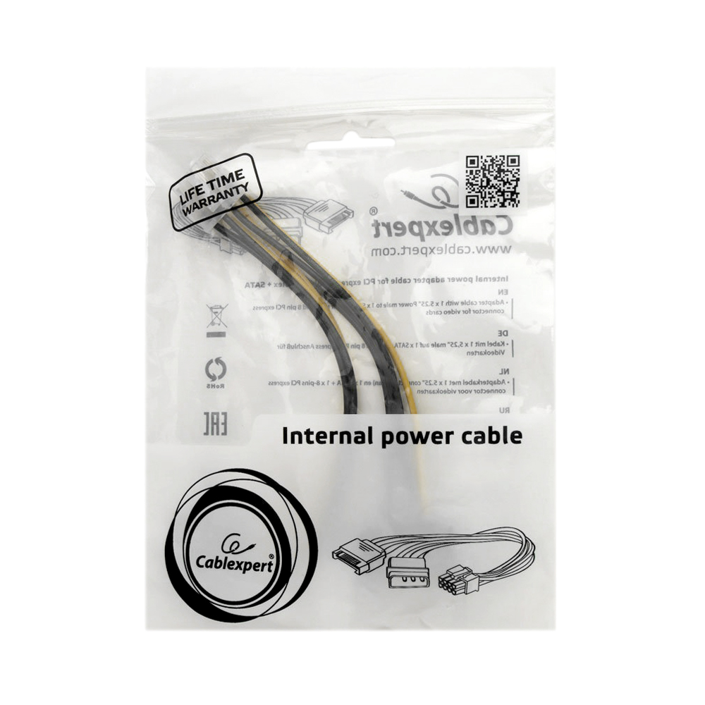 Кабель Molex 4 pin + SATA power -> 8 pin, Cablexpert CC-PSU-82 Cable converter for power supply