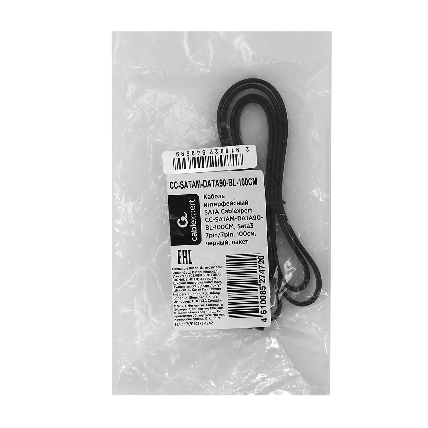 Кабель SATA, Cablexpert CC-SATAM-DATA90-BL-100CM