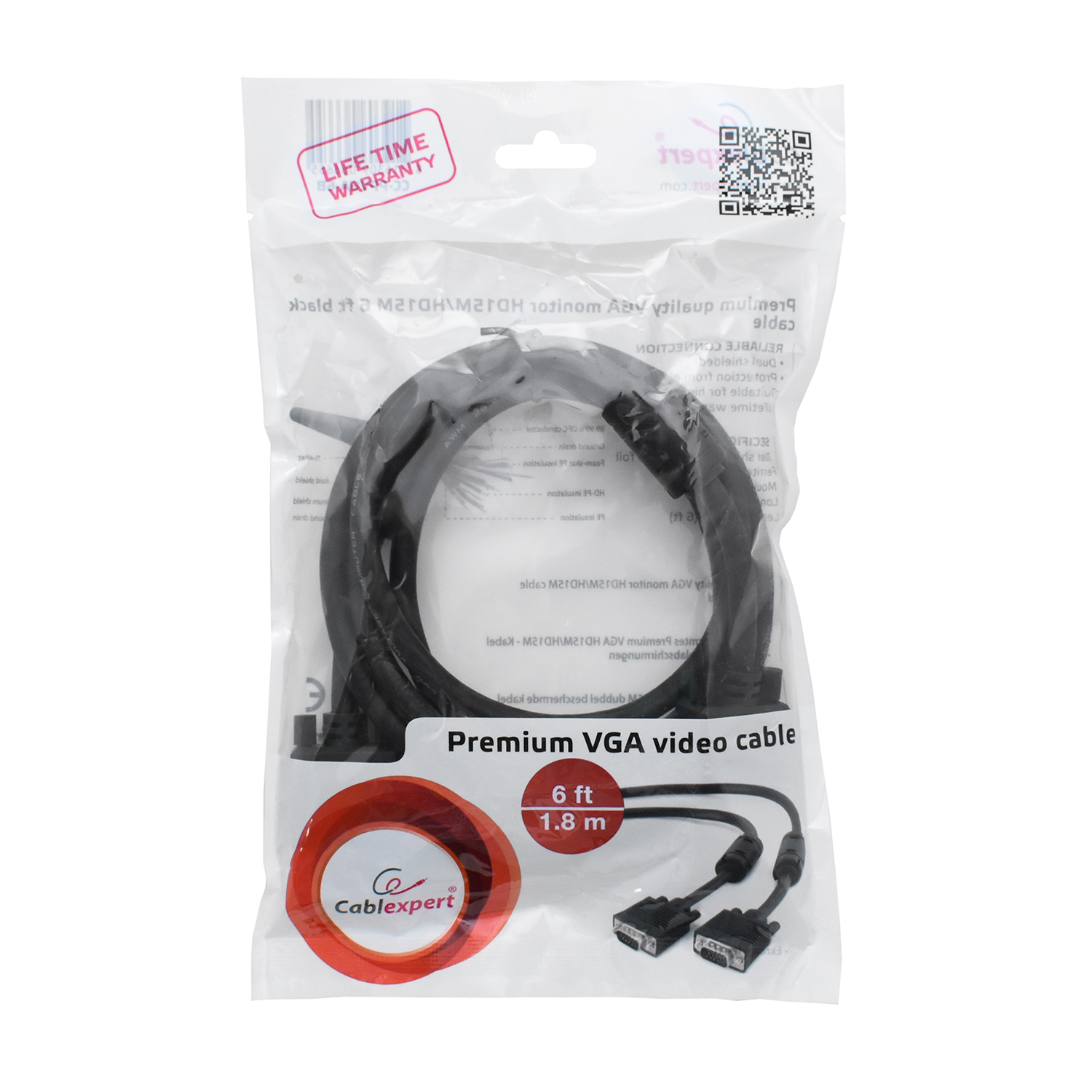 Кабель SVGA 15m/15m, Cablexpert CC-PPVGA-6B, 1.8м Cable (for KVM - switch box), экранированный, black