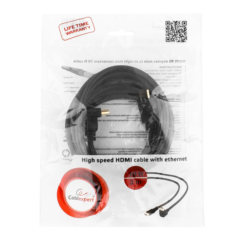 Кабель SVGA, Cablexpert CC-HDMI490-10, 3м Cable HDMI to HDMI, угловой разъем