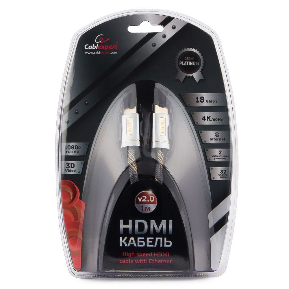 Кабель SVGA, HDMI to HDMI, 1.0m, Cablexpert CC-P-HDMI02-1M Cable gray