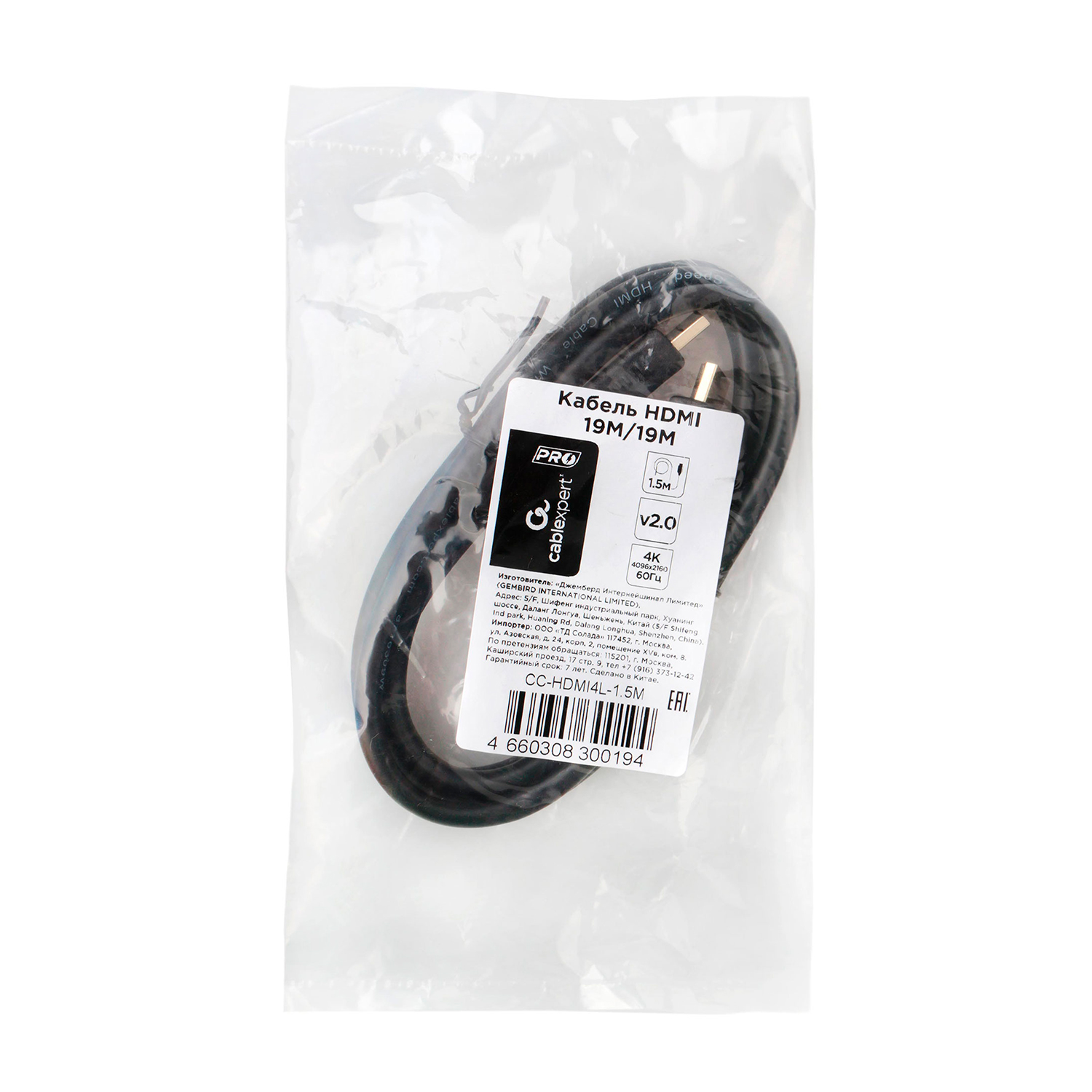 Кабель SVGA, HDMI to HDMI, 1,5m, Cablexpert CC-HDMI4L-1.5M Cable black