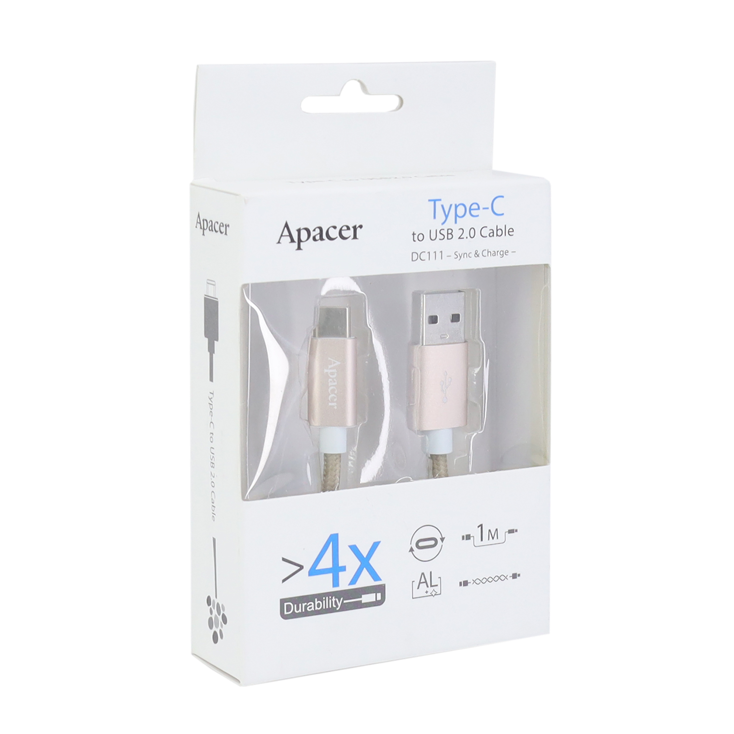 Кабель USB, Apacer DC111, APDC111С-1, 1.0м, Золотой Cable Type A - Type C, USB 2.0, gold
