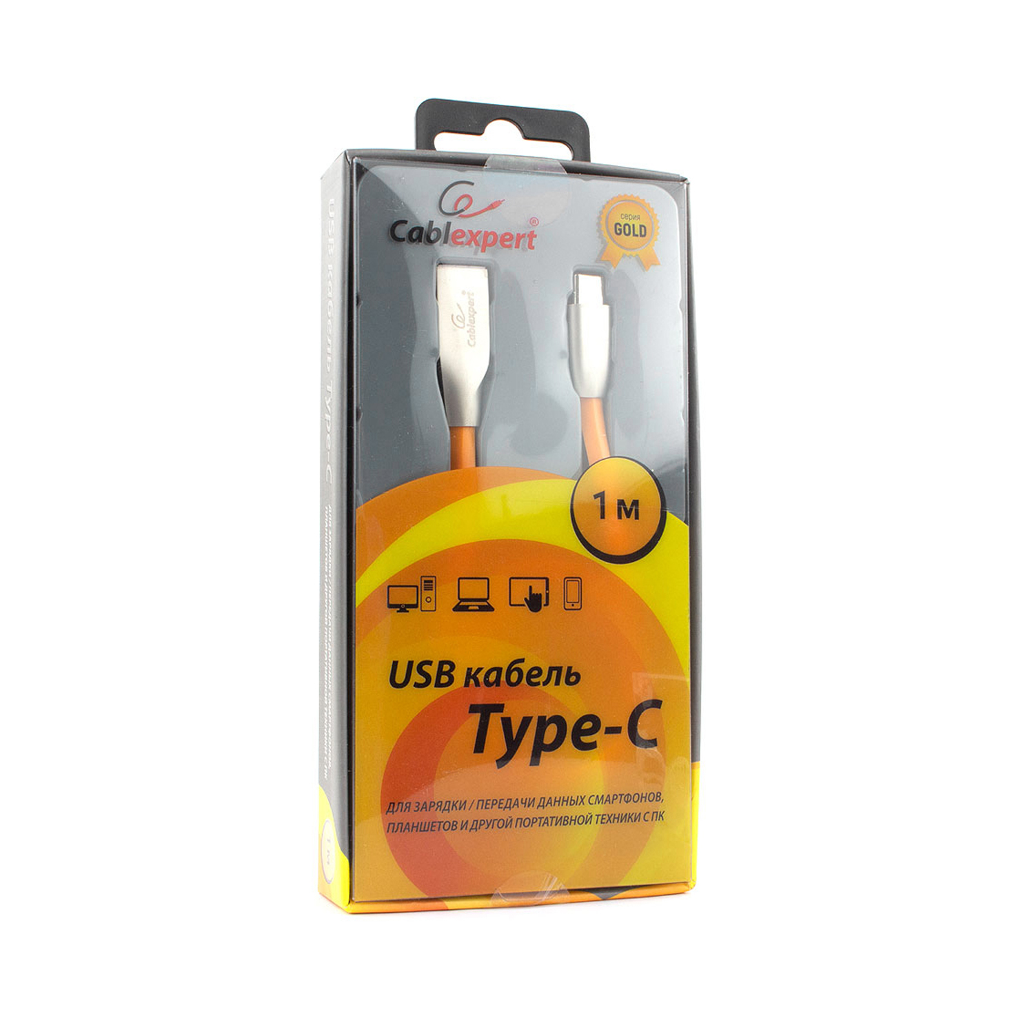 Кабель USB, Cablexpert CC-G-USBC01O-1M, 1.0м, Оранжевый