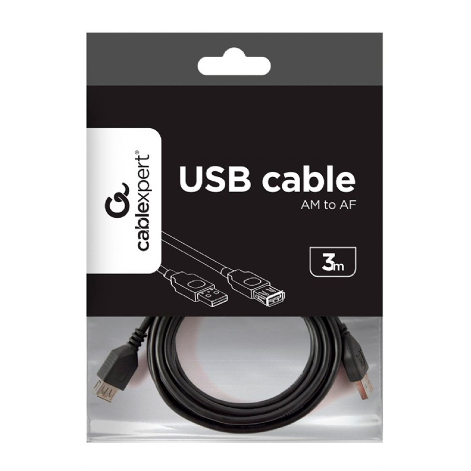 Cable USB (удлинитель) Type Am- Af, 3m, Cablexpert CCP-USB2-AMAF-10, USB 2.0, black