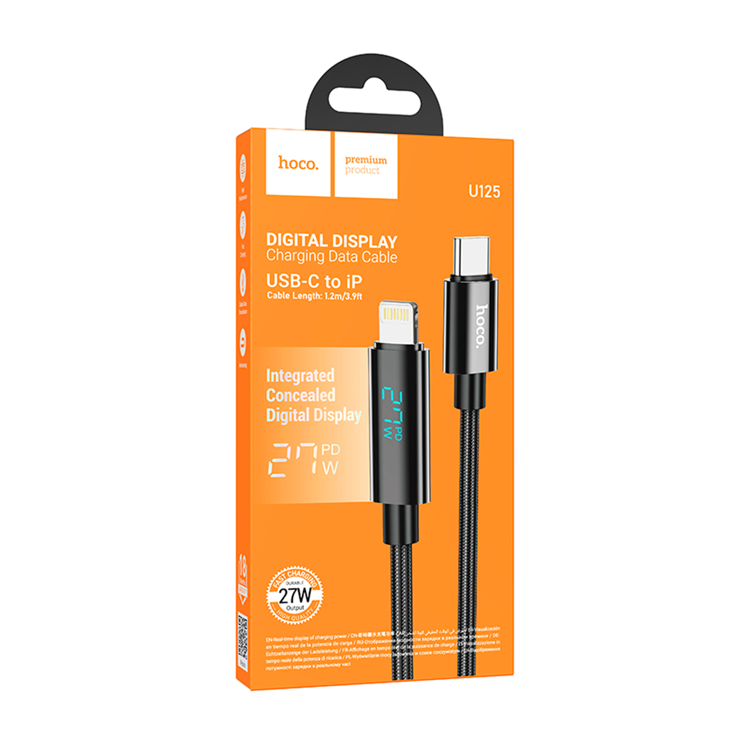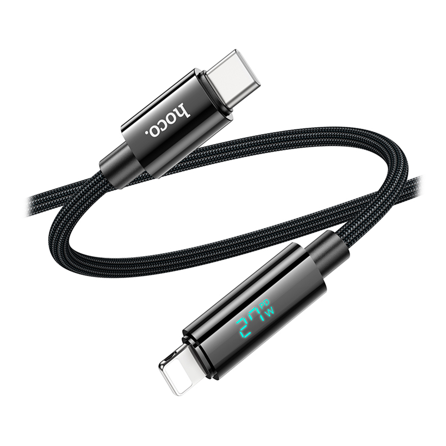 Кабель USB Hoco U125, Lightning, USB 2.0, 1.2м, черный Cable Type C - 27W, display, black