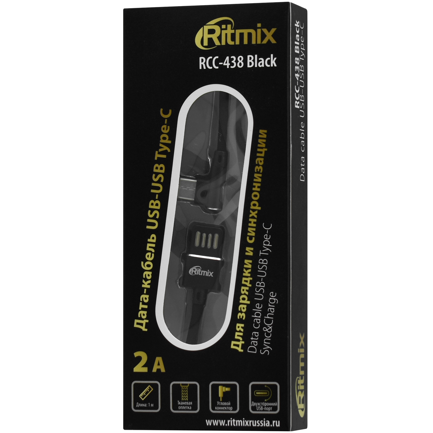 Cable USB Type A - Type C, 1.0м, Ritmix RCC-438 Black, 2A