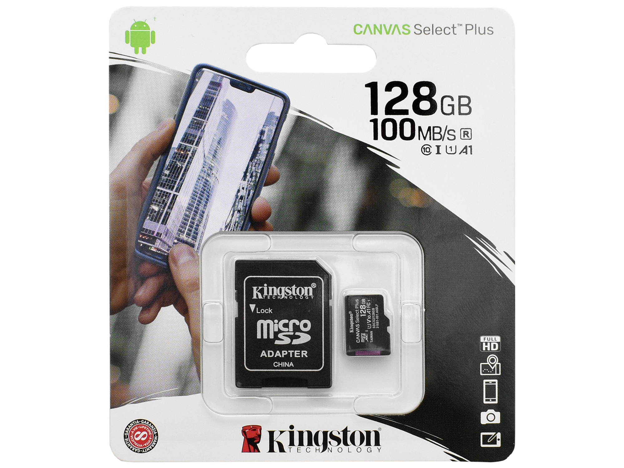 Карта памяти microSDXC 128GB, Kingston SDCS2/128GB MemoryCard Class 10, + adapter SD