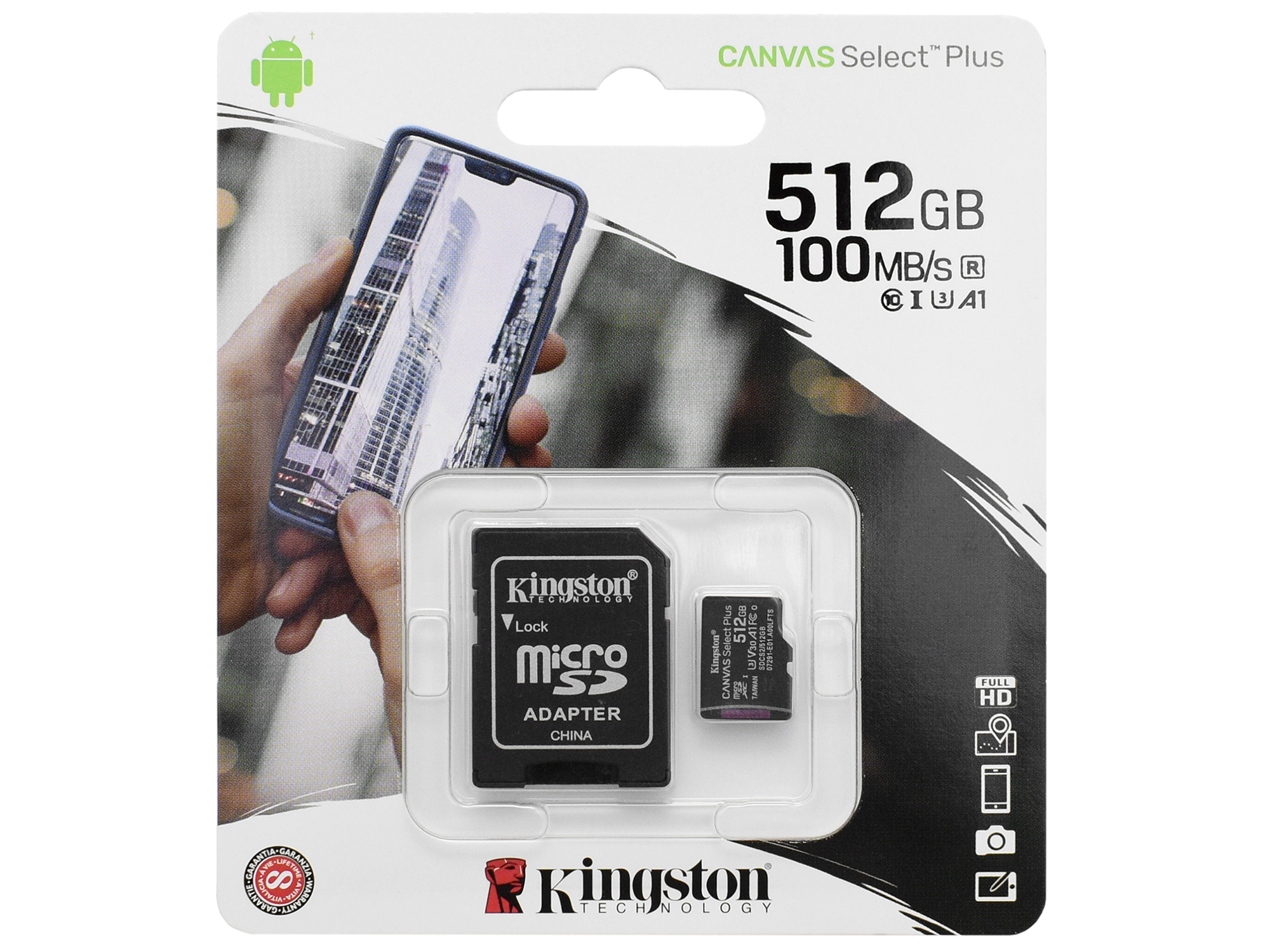 Карта памяти microSDXC 512GB, Kingston SDCS2/512GB MemoryCard Class 10, + adapter SD