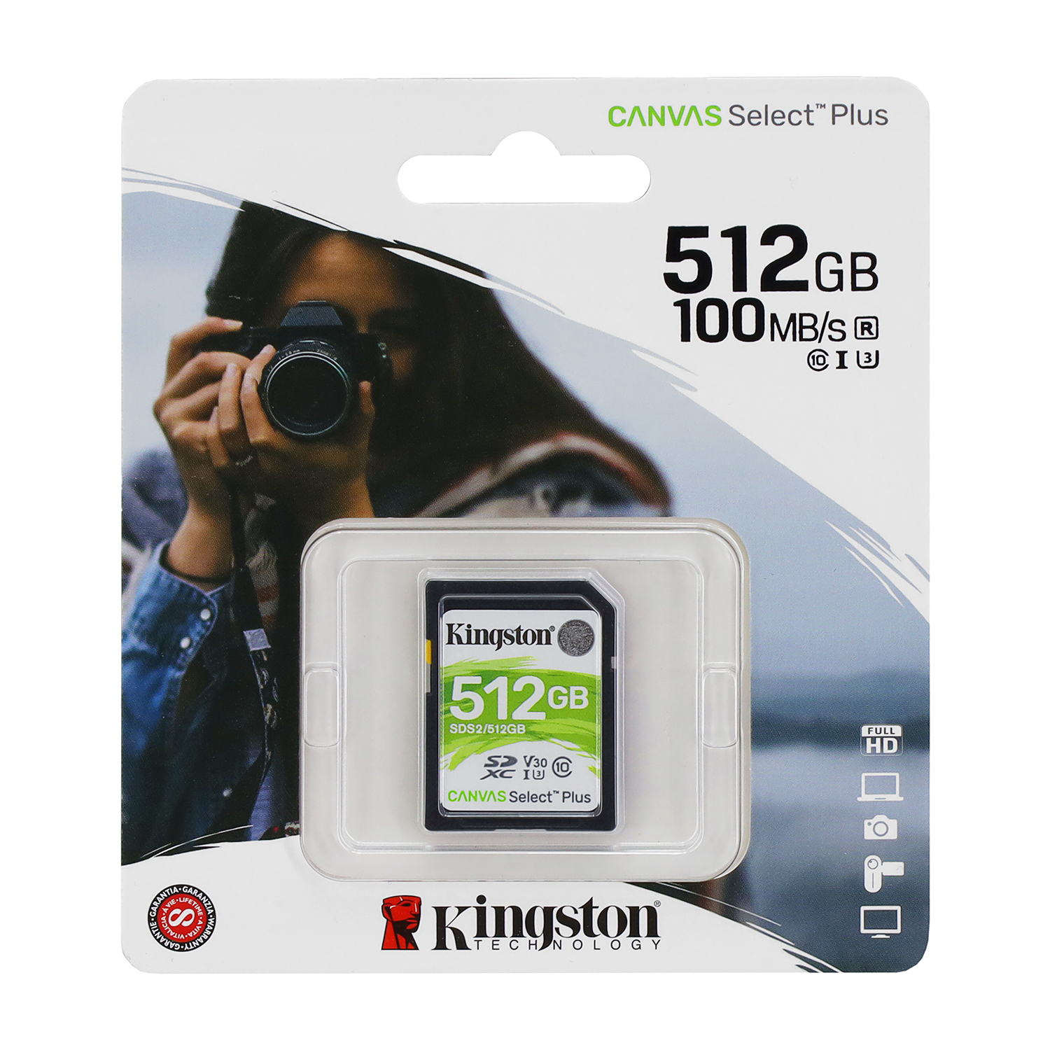 Карта памяти SDXC Kingston, SDS2/512GB, 512GB, UHS Class 10 MemoryCard SecureDigital